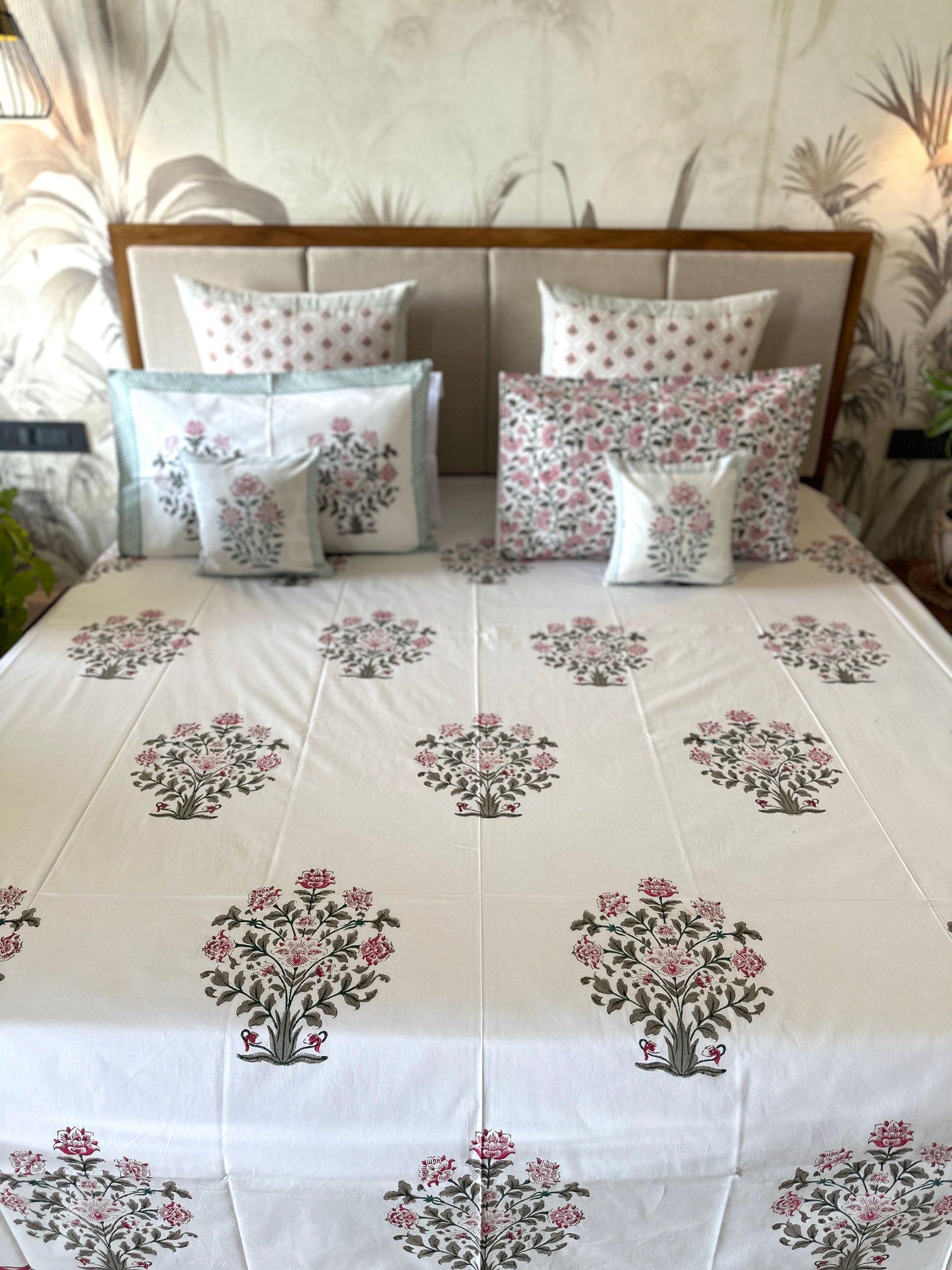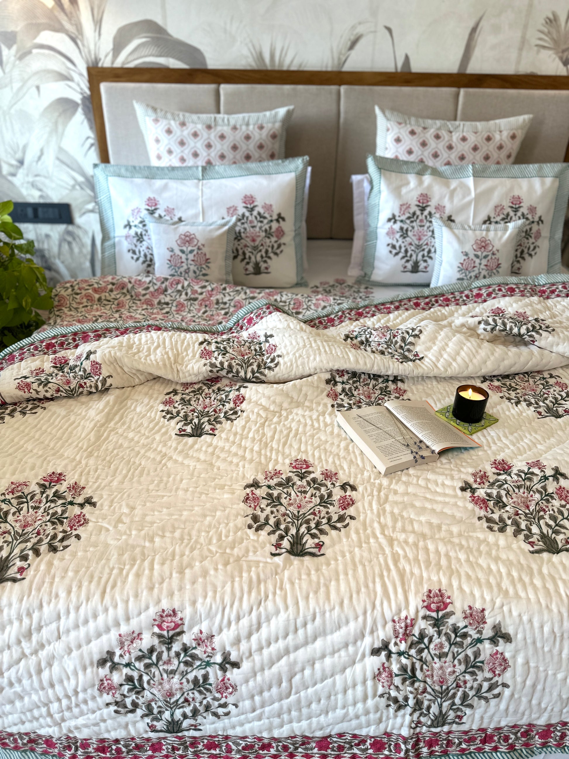 Bedding Set Hand Block | Quilt with Bedsheet Set | Moonlit Rose