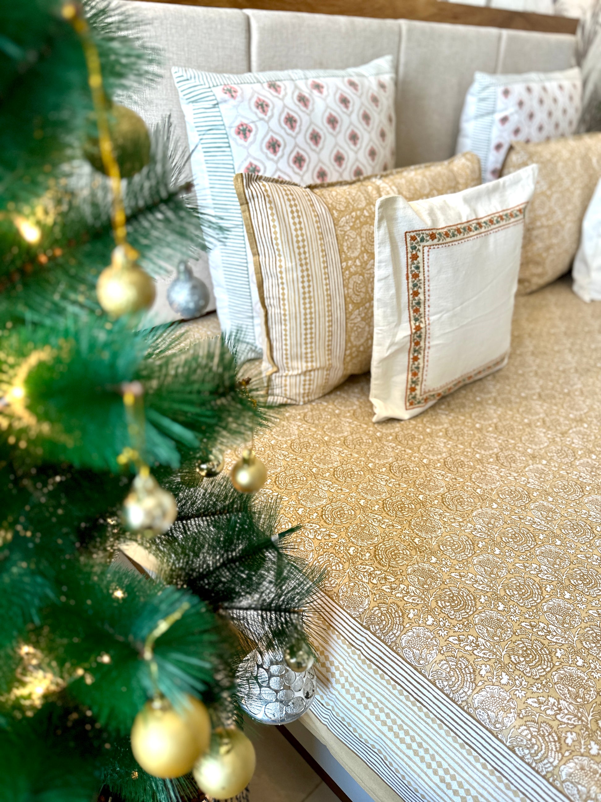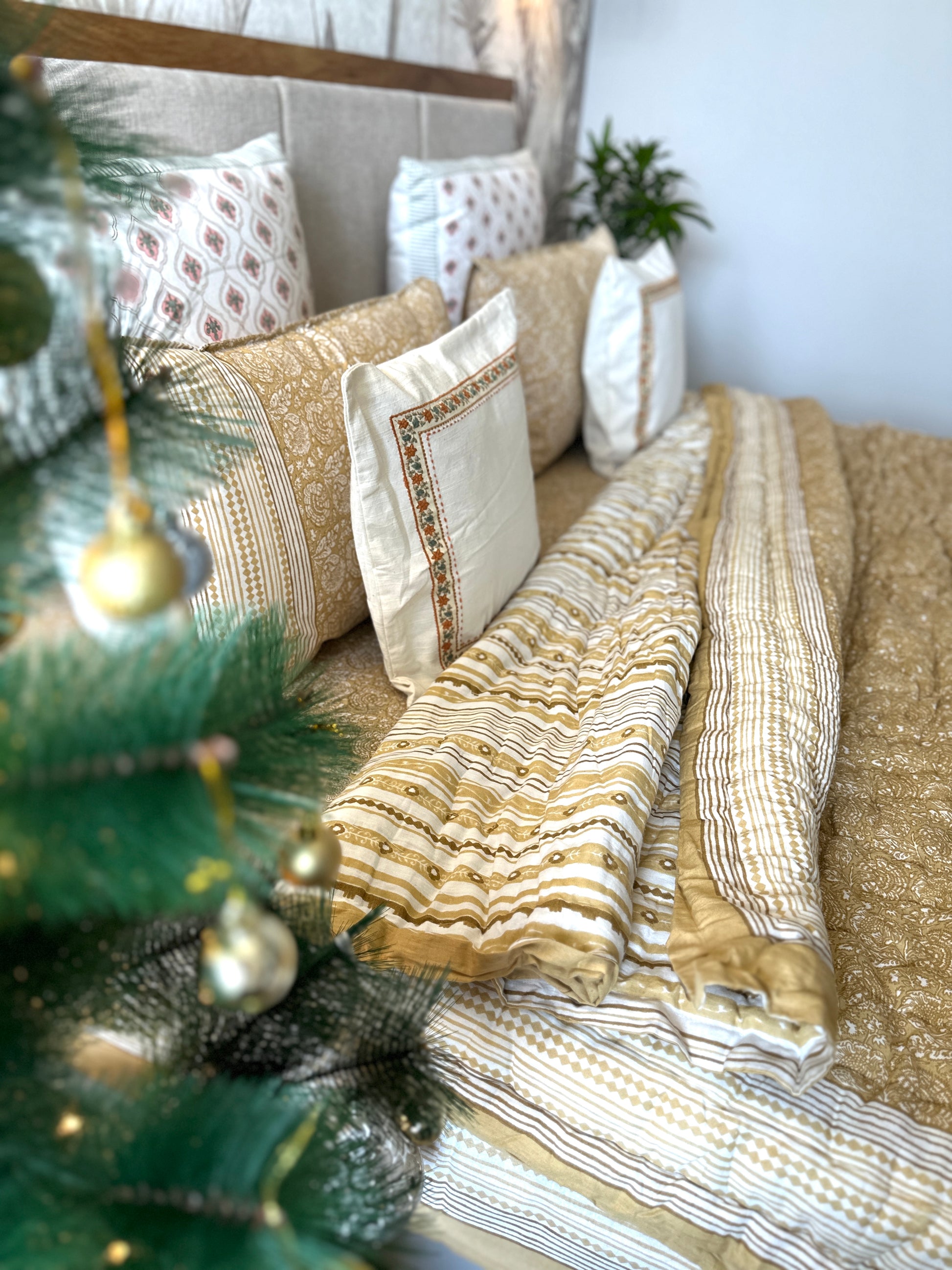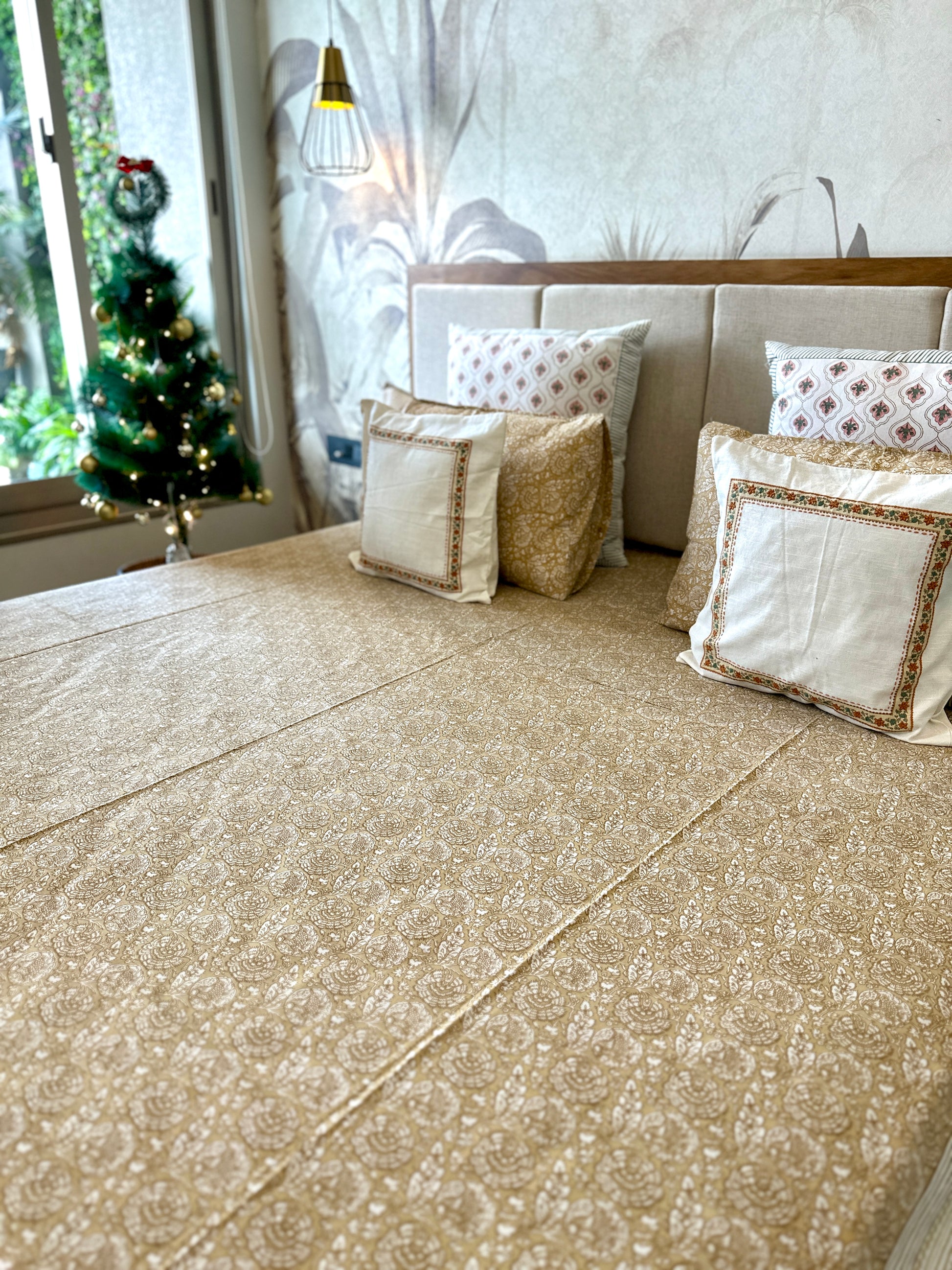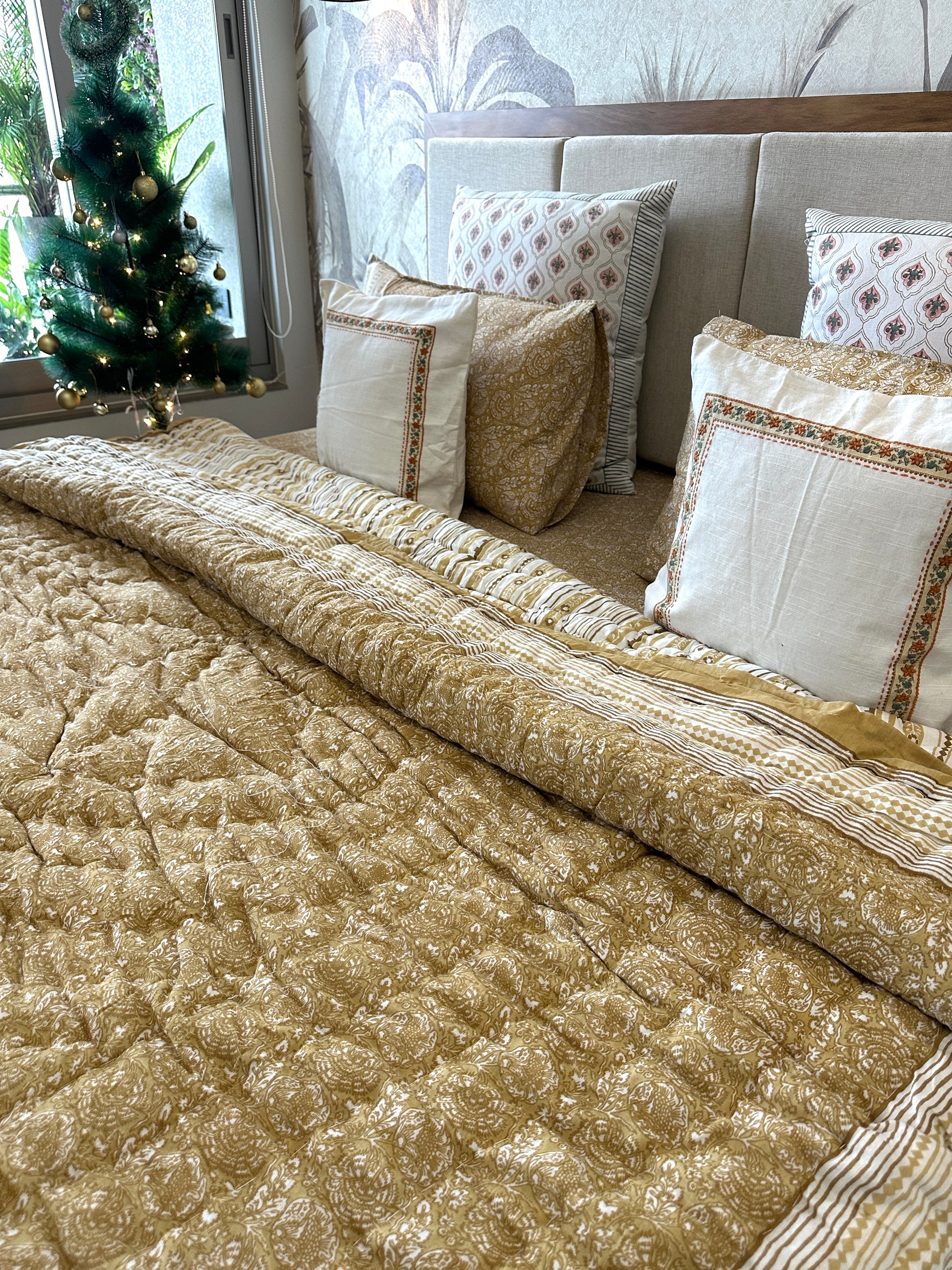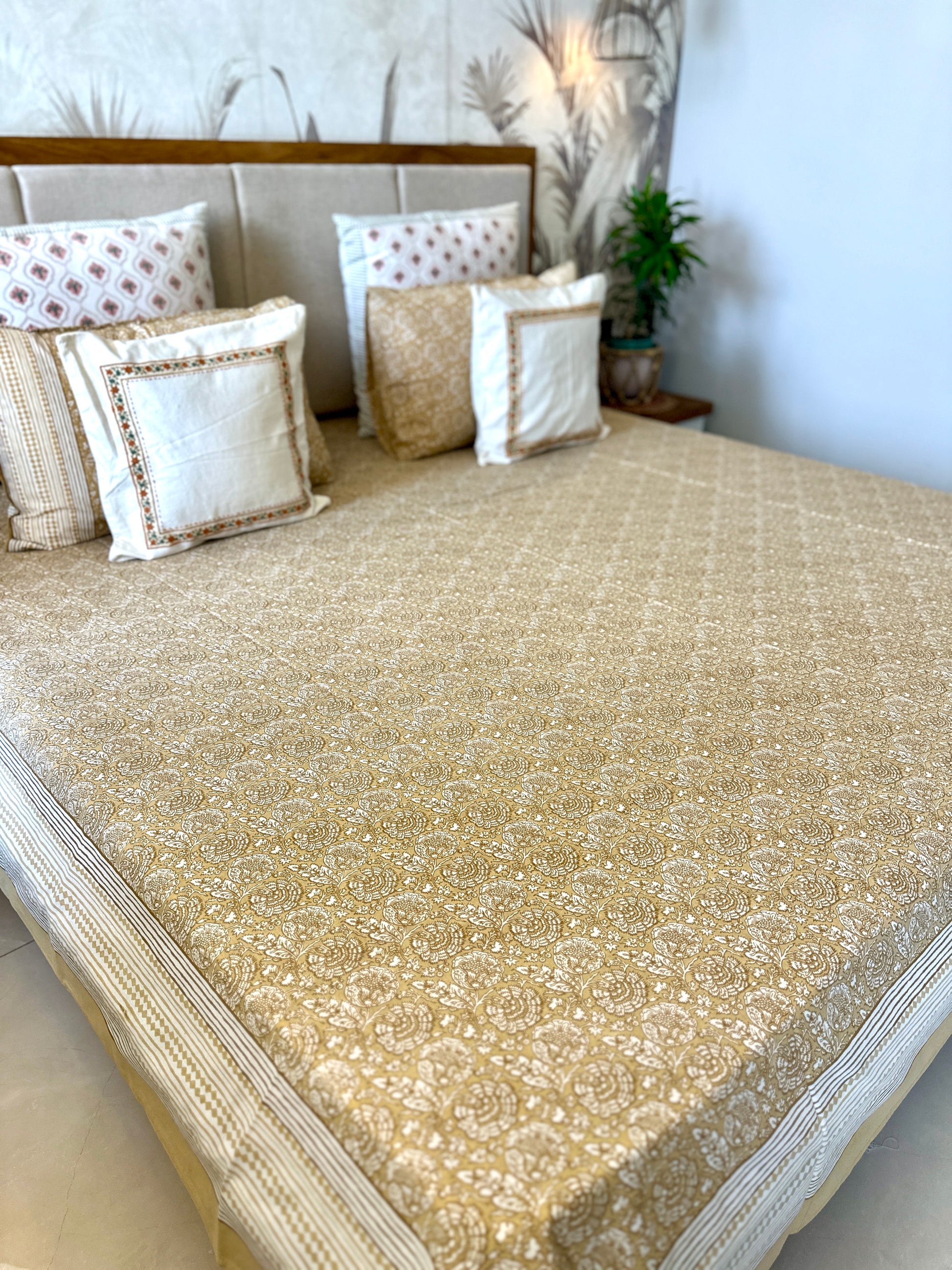 Bedding Set Hand Print | Quilt with Bedsheet Set | Lemon Sorbet