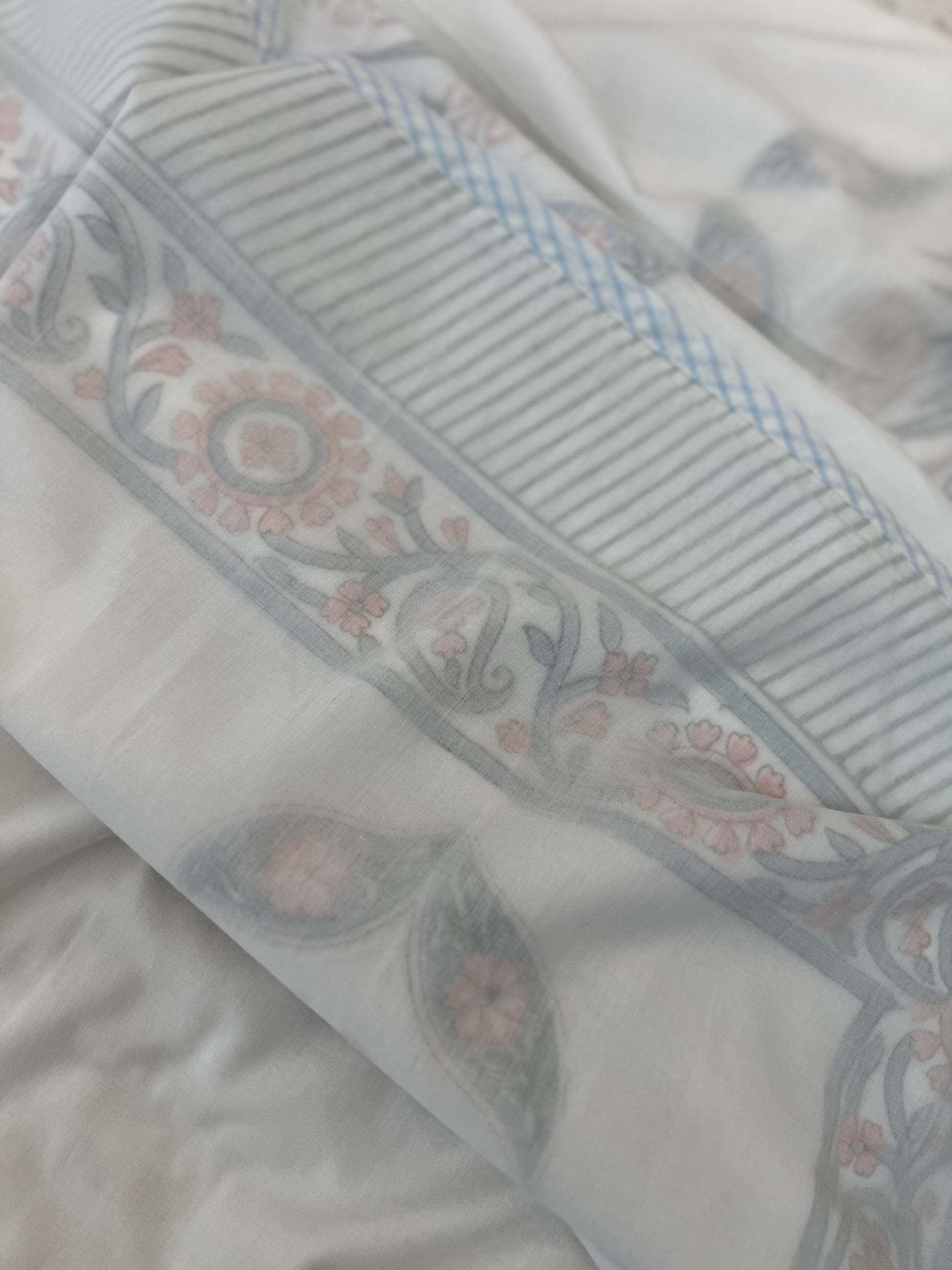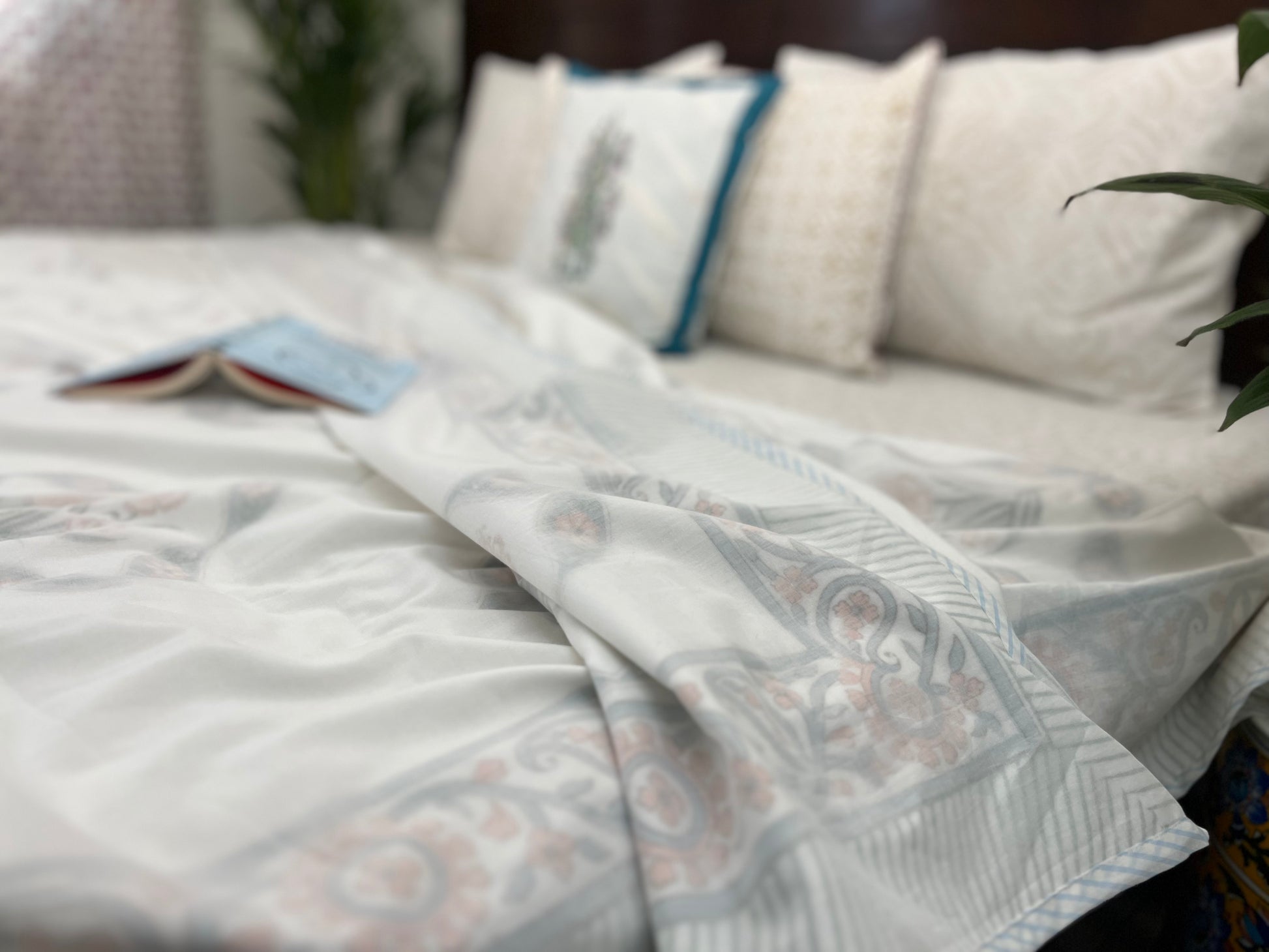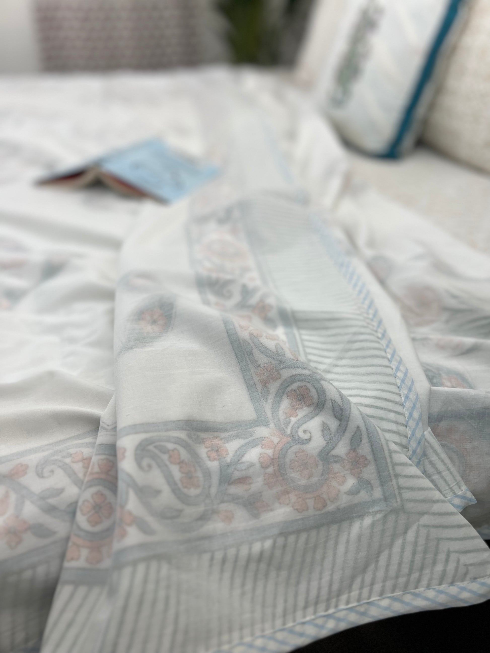 A block printed dohar made with Muslin. Perfect for cool summer comfort. This dohar is lightweight, luxuriously soft and subtly coloured - an effortless and beautiful addition to your home.