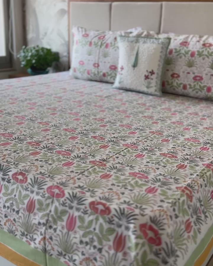 Bedsheet - Hand or Machine wash with cold water using a mild detergent. Do not soak, bleach or tumble dry. Dry in shade. It is recommended to wash whites and dark colors separately. Warm Iron as needed.