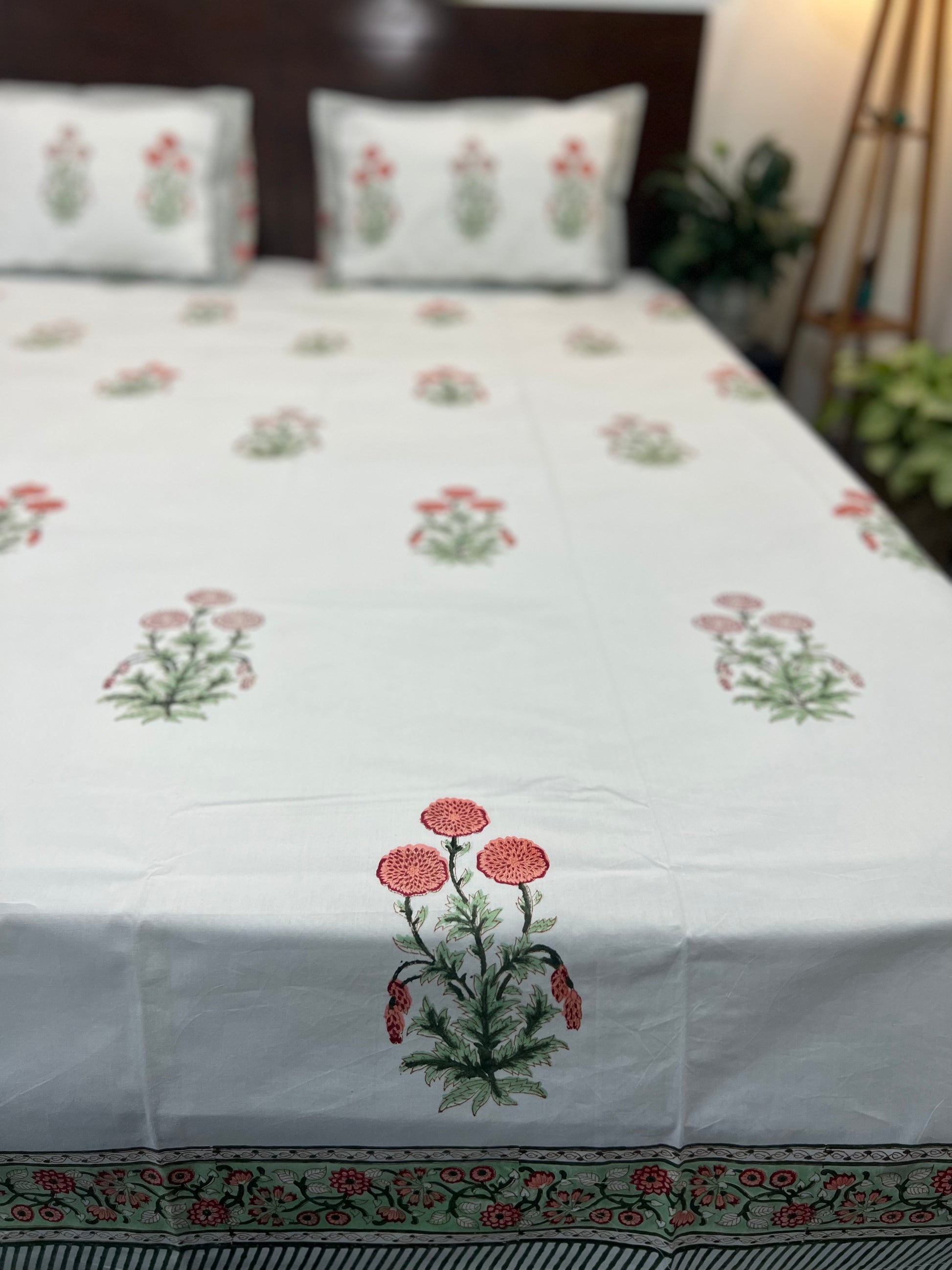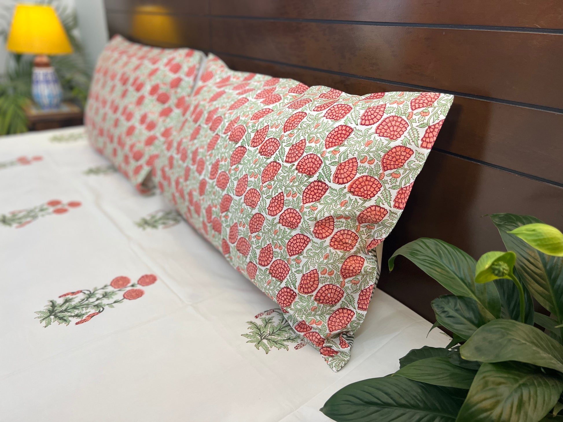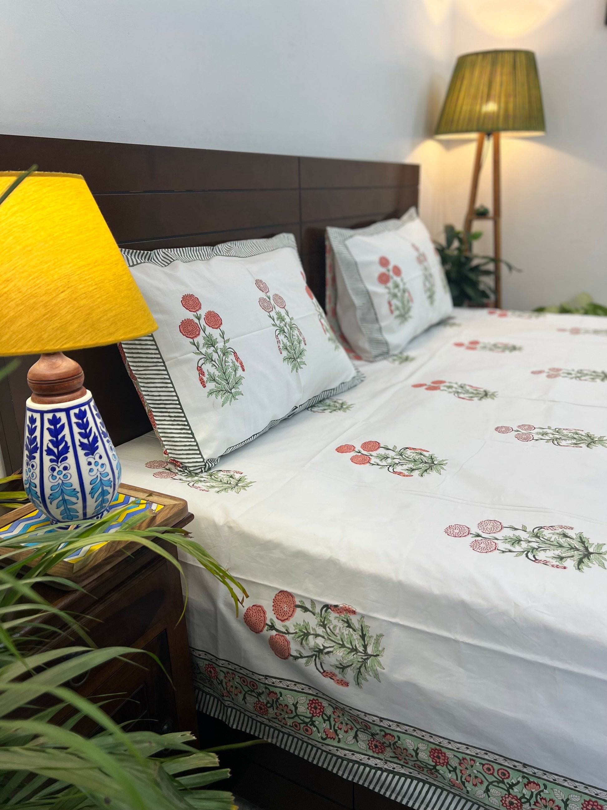 Elevate the appeal of your bedroom with aesthetically designed bedsheet sets by Indian artisans. The ethnic motifs are hand block printed on 100% percale cotton spread to fill your room with happy and positive vibes!