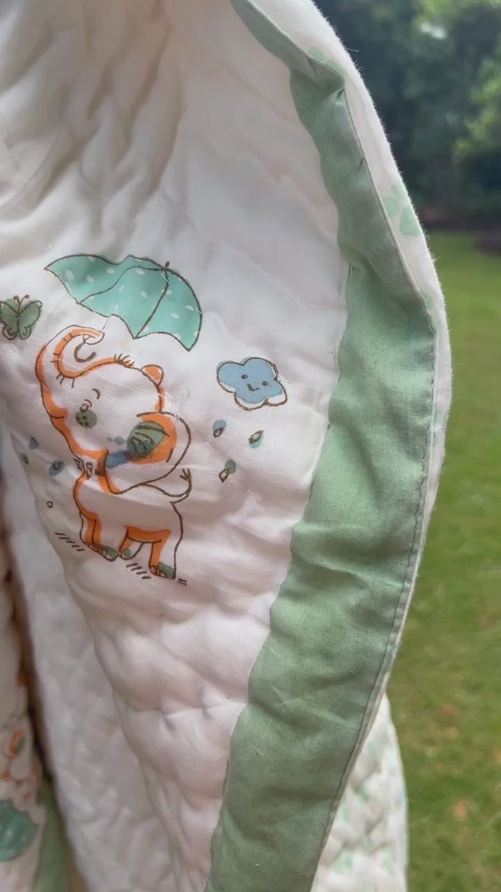 The baby quilts are soft and cotton filled, epitomes of comfort for your child. Designed in a way to give that perfect warmth and snug mother love in winters and cool comfort in hot summers, our quilts are made of fine cotton which are hand beaten and then filled in good measure to give air , lightness and warmth. Hand block printed with love for your little one.