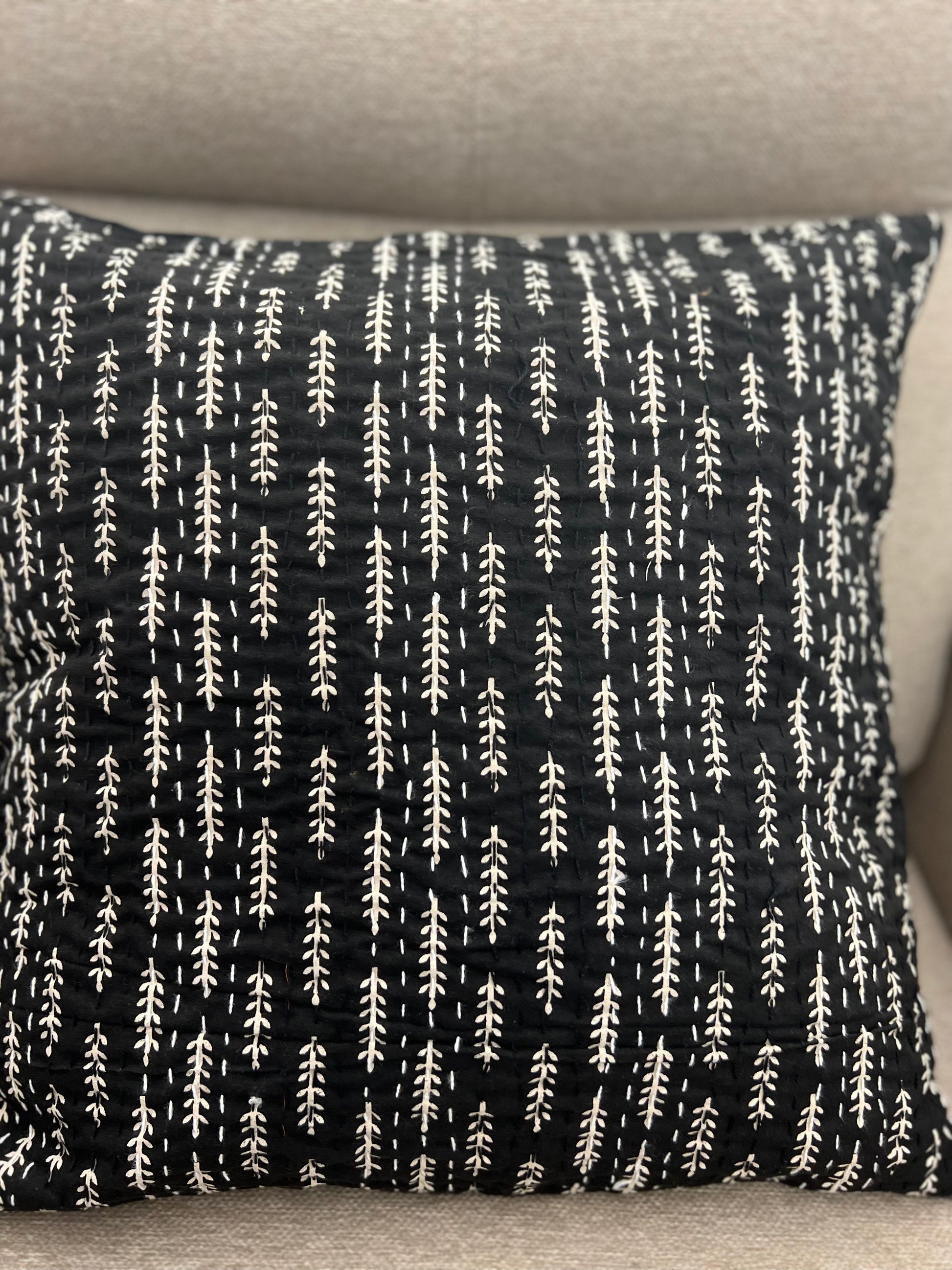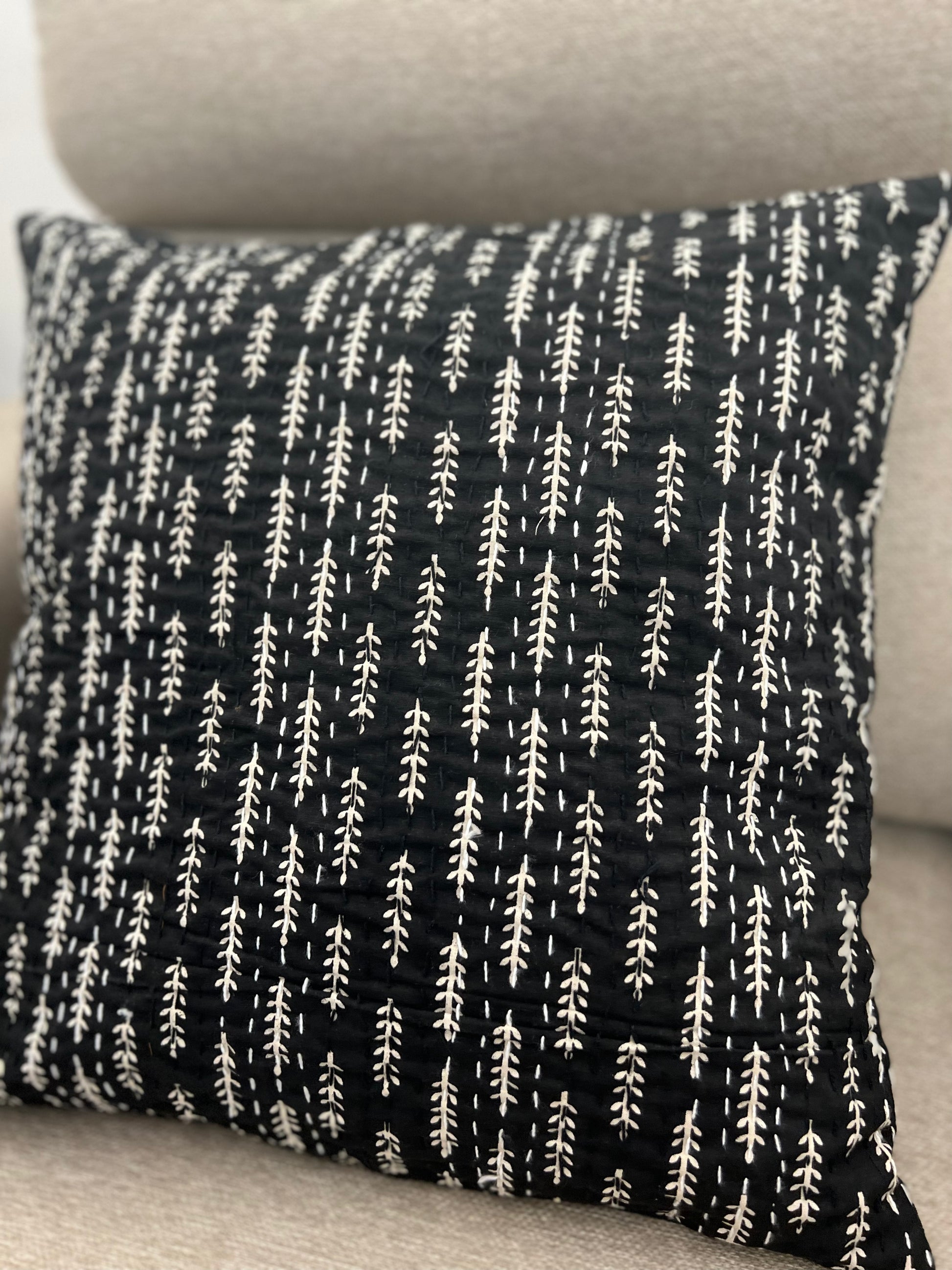 Kantha Cushion Cover | 16*16 Inches | Black - Ajrakh