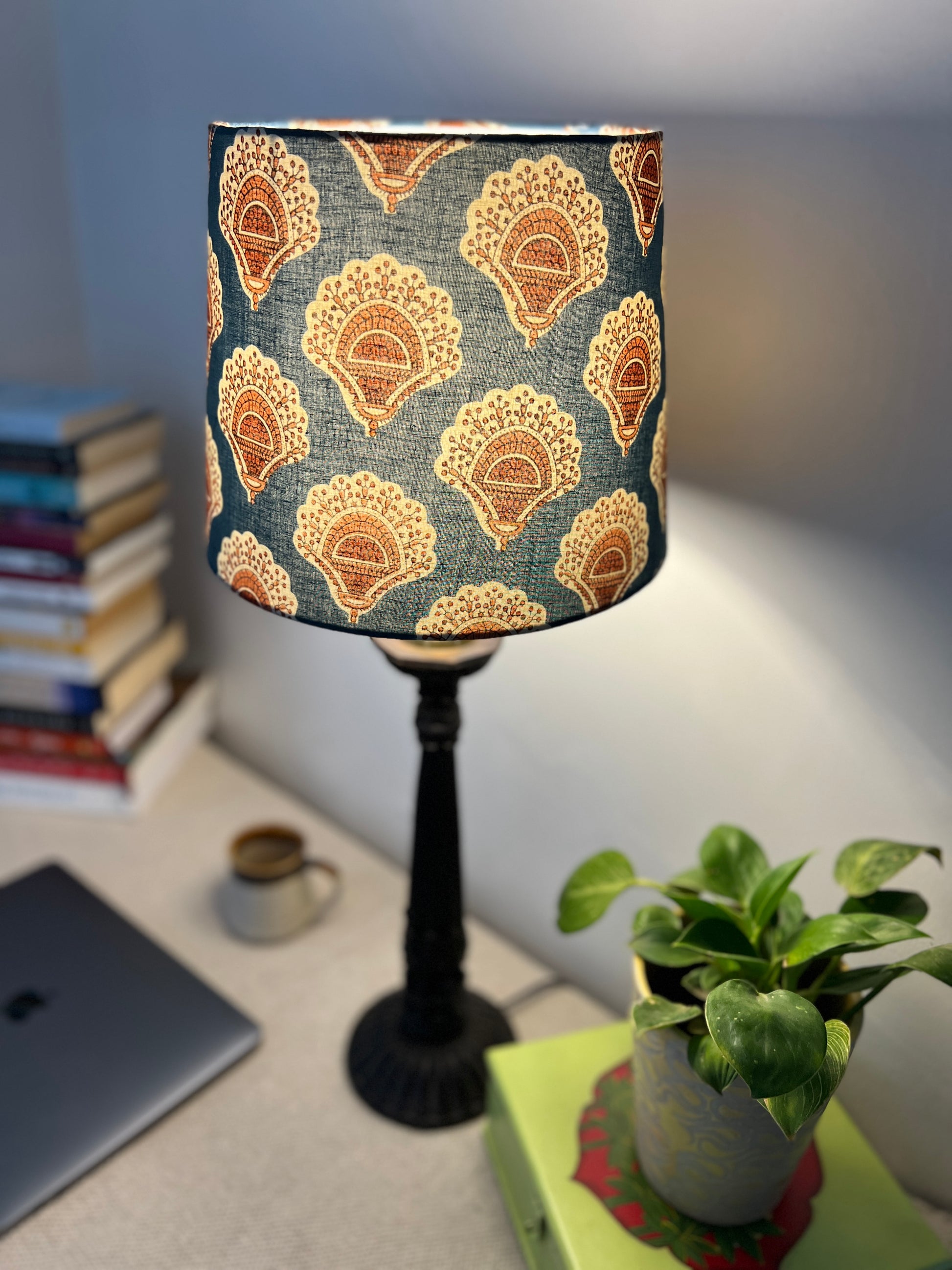 | Illuminate your living space with the charm and sophistication of our lampshades. Create a cozy and inviting ambiance that complements your decor and elevates the overall look and feel of your home. These lampshades captures your style and illuminates your life with beauty and grace. These lampshades not only illuminate your space in the dark but also add a touch of beauty and charm during the day with their captivating colors and prints. Shape : Cone Lower Diameter - 10 Inches Upper Diameter - 8 Inches Height - 8 Inches This lamp shade is placed on a 12 inches Base. Cleaning: Gently dust your lampshade regularly using a soft, lint-free cloth or a feather duster. Avoid using harsh or abrasive cleaning materials that may damage the fabric or design. |