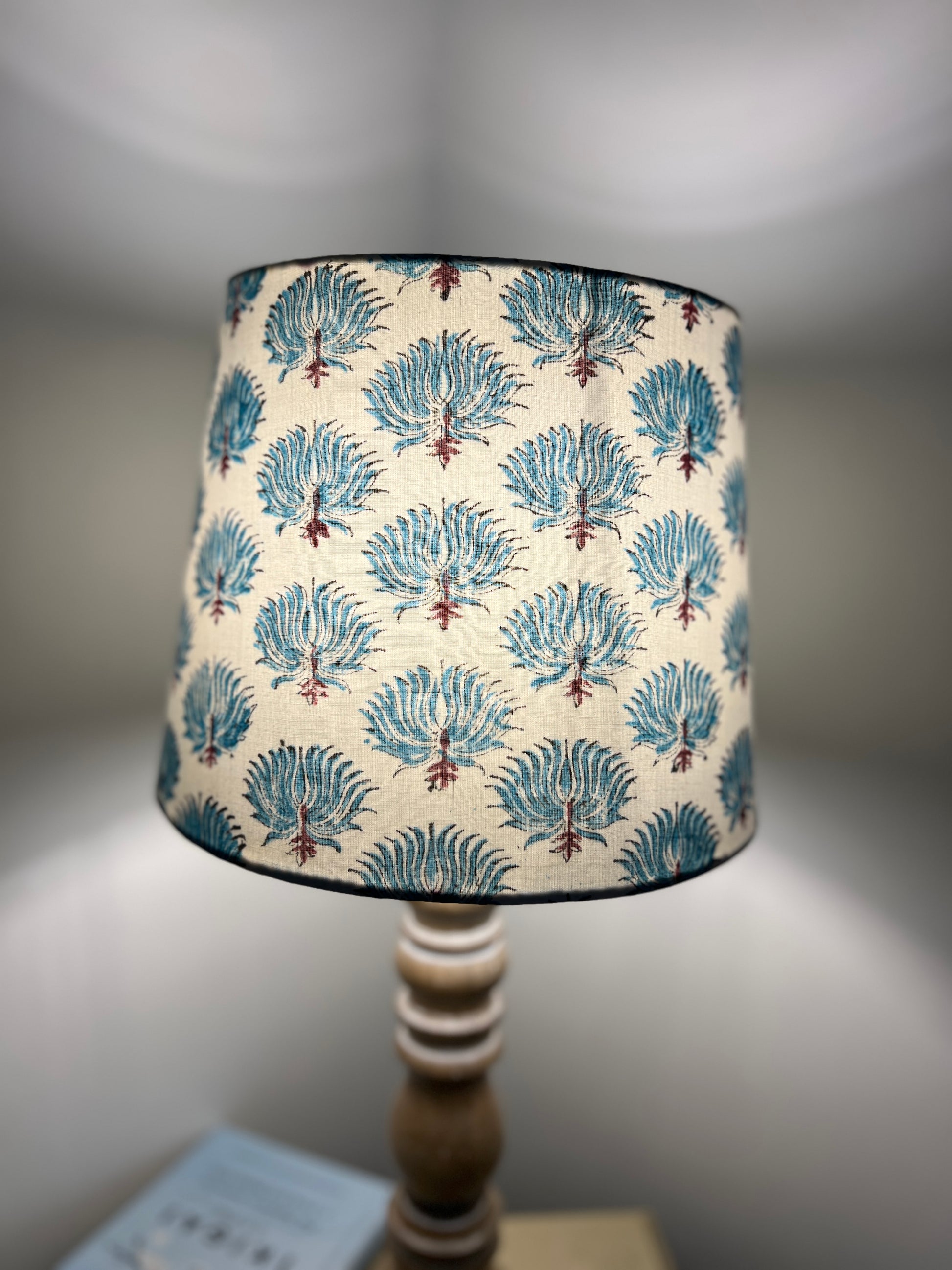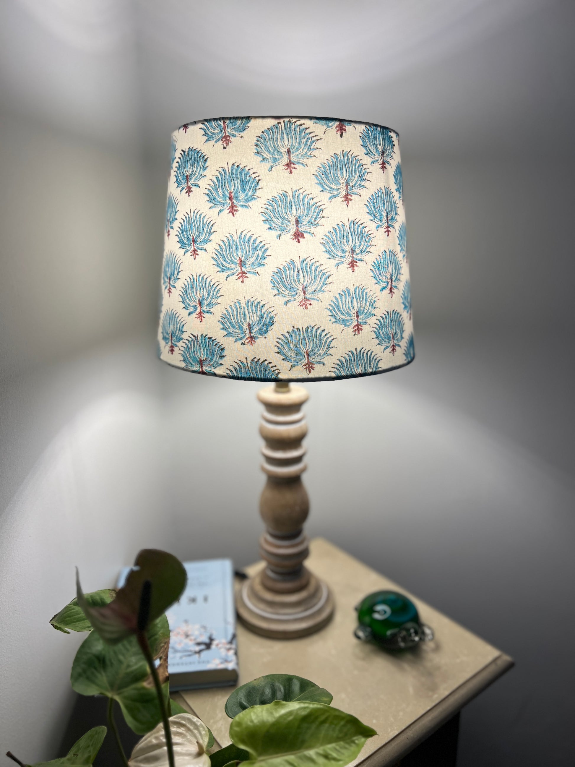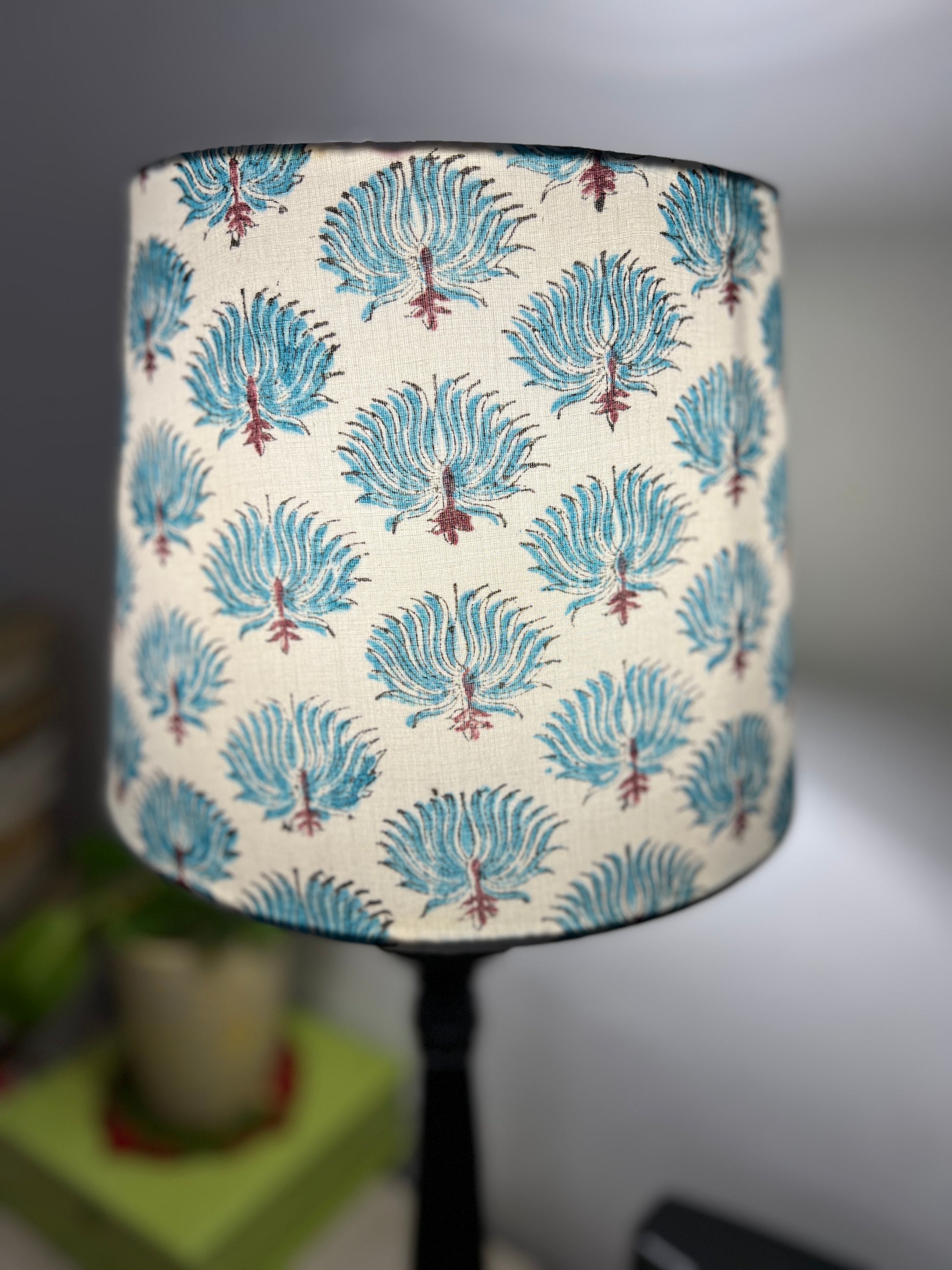 | Illuminate your living space with the charm and sophistication of our lampshades. Create a cozy and inviting ambiance that complements your decor and elevates the overall look and feel of your home. These lampshades captures your style and illuminates your life with beauty and grace. These lampshades not only illuminate your space in the dark but also add a touch of beauty and charm during the day with their captivating colors and prints. Shape : Cone Lower Diameter - 10 Inches Upper Diameter - 8 Inches Height - 8 Inches This lamp shade is placed on a 12 inches Base. Cleaning: Gently dust your lampshade regularly using a soft, lint-free cloth or a feather duster. Avoid using harsh or abrasive cleaning materials that may damage the fabric or design. |
