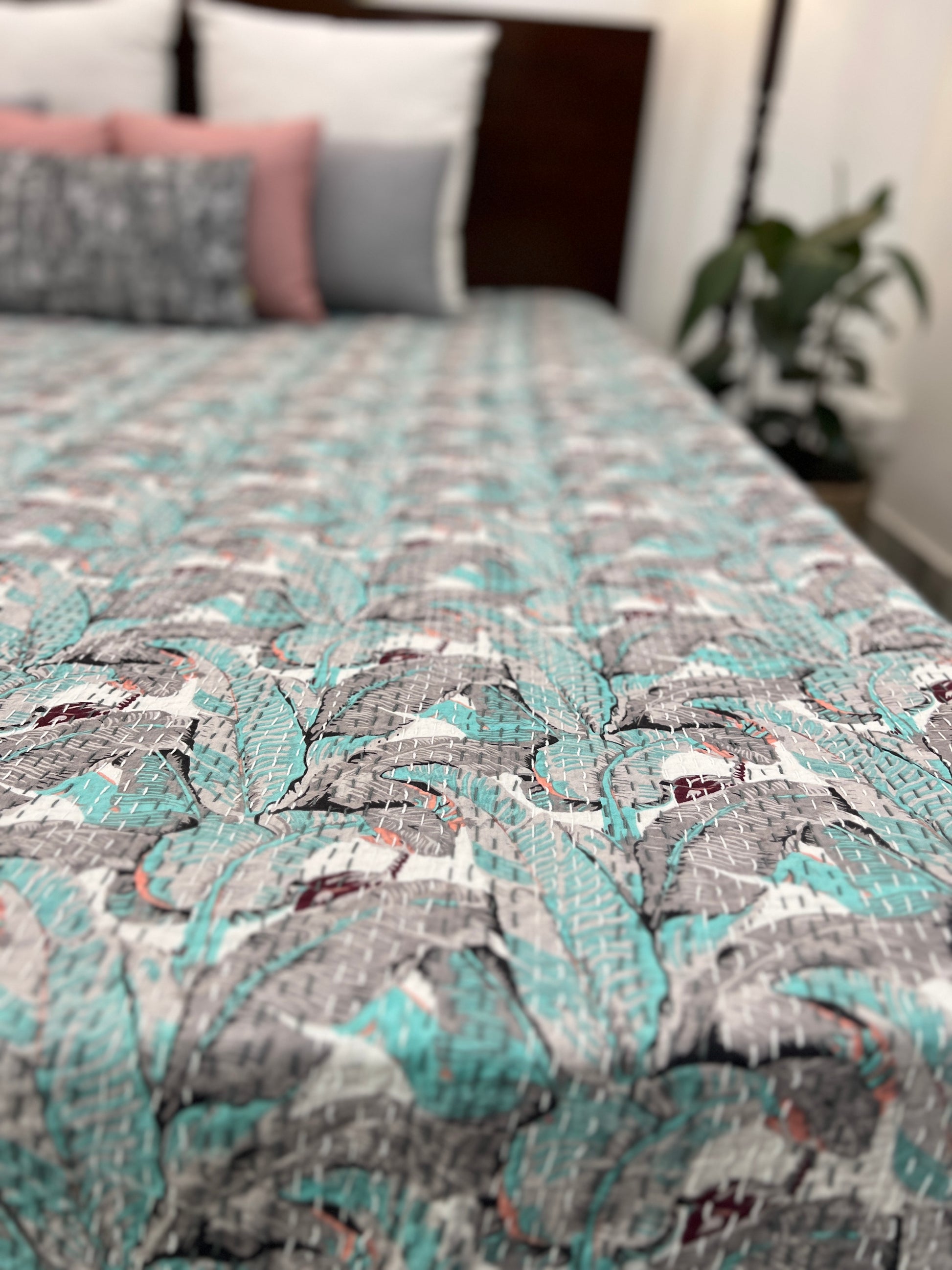 Kantha Bedcover | King Size | 90*108 Inches | Tropical Landscape