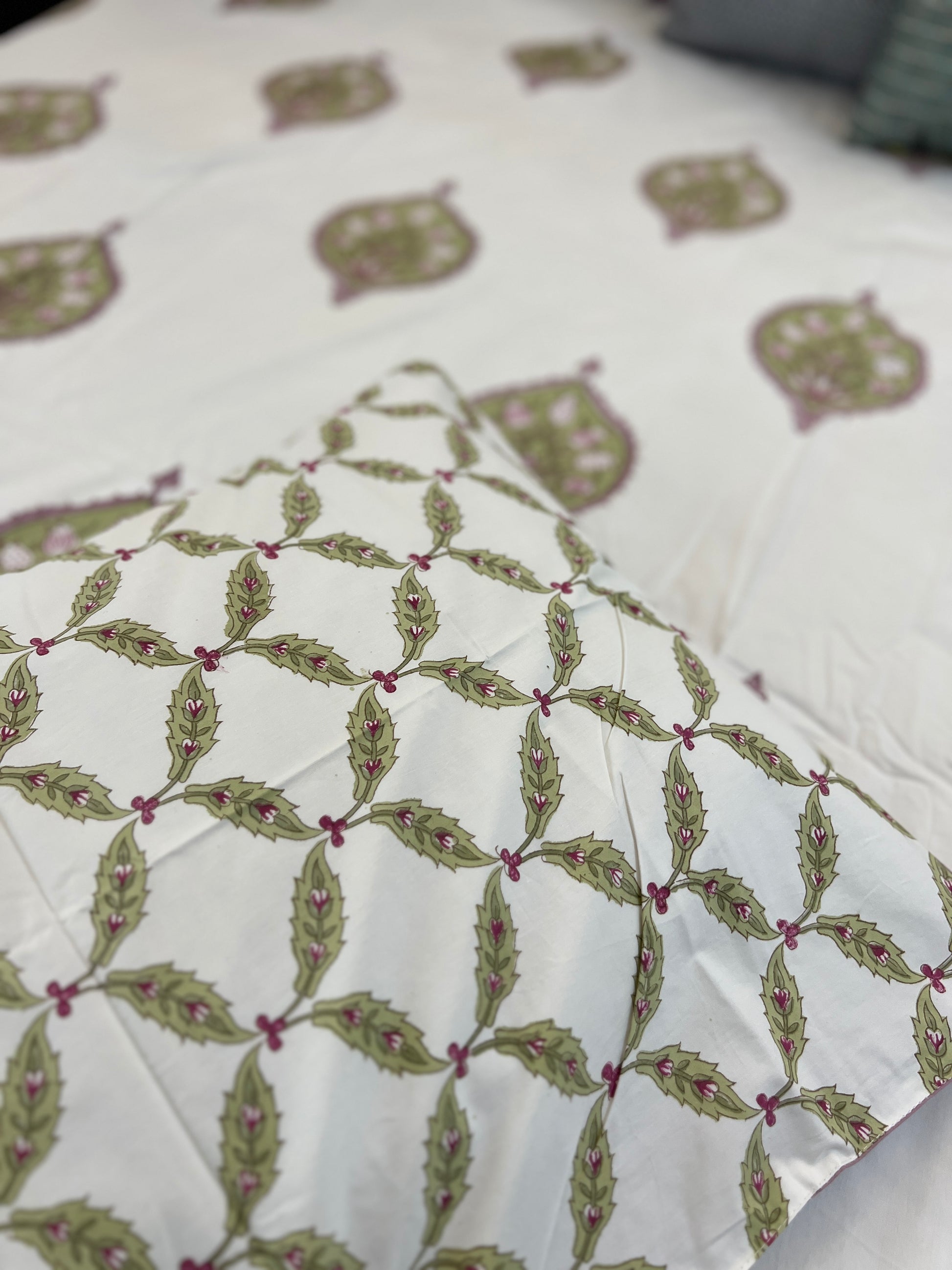 Crafted with meticulous attention to detail, our Bedding set features vibrant and intricate patterns inspired by aesthetics. The hand block printing technique adds a touch of artistry, making each piece truly unique. Every block tells a story of traditional craftsmanship and cultural heritage.