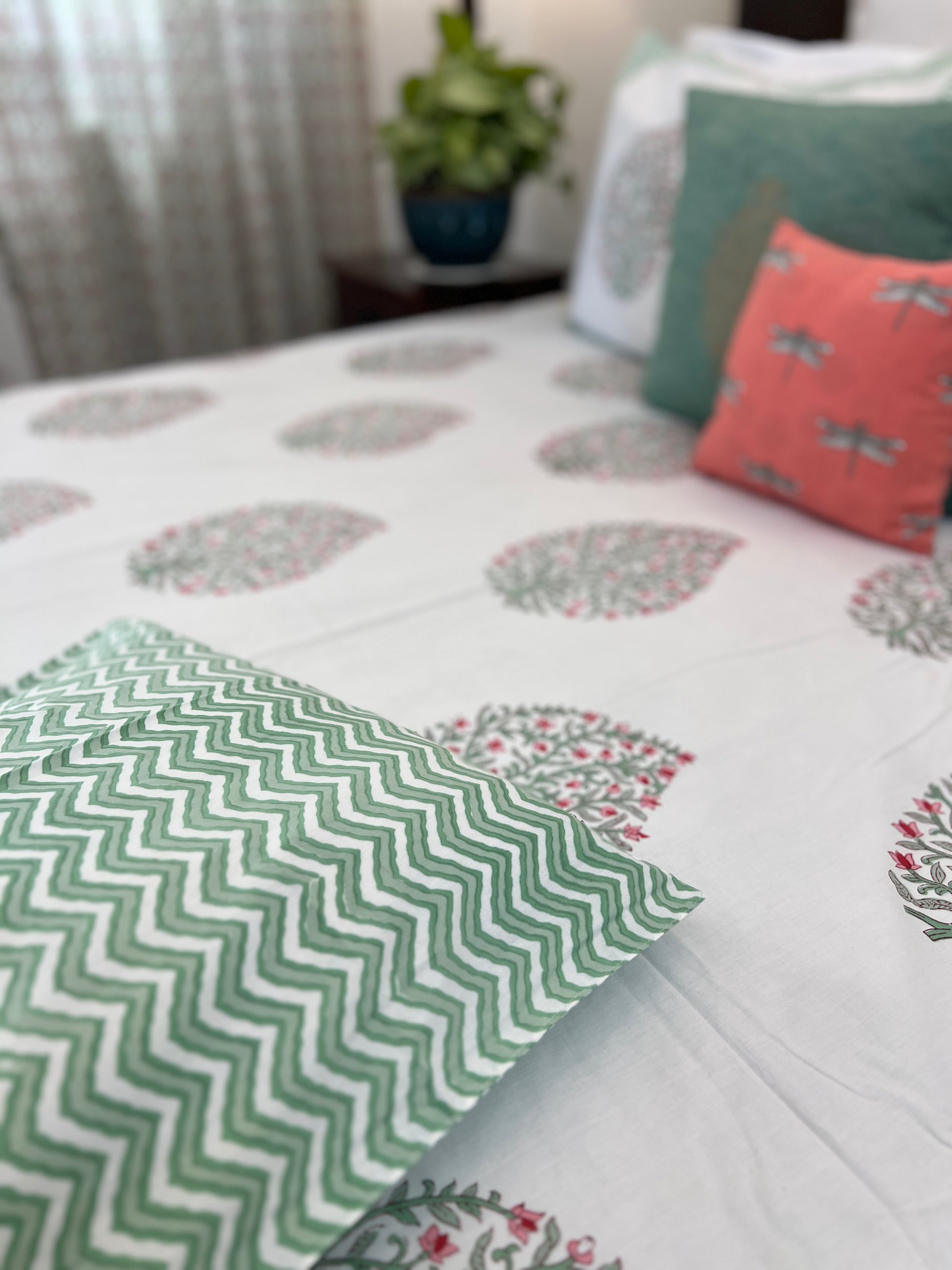 Inspired by traditional motifs and craftsmanship, our Ethnic Blocks bedsheet features a symphony of intricate patterns. The combination of bold and lively colors creates a visually striking and captivating display, bringing a touch of ethnic charm to your bedroom.