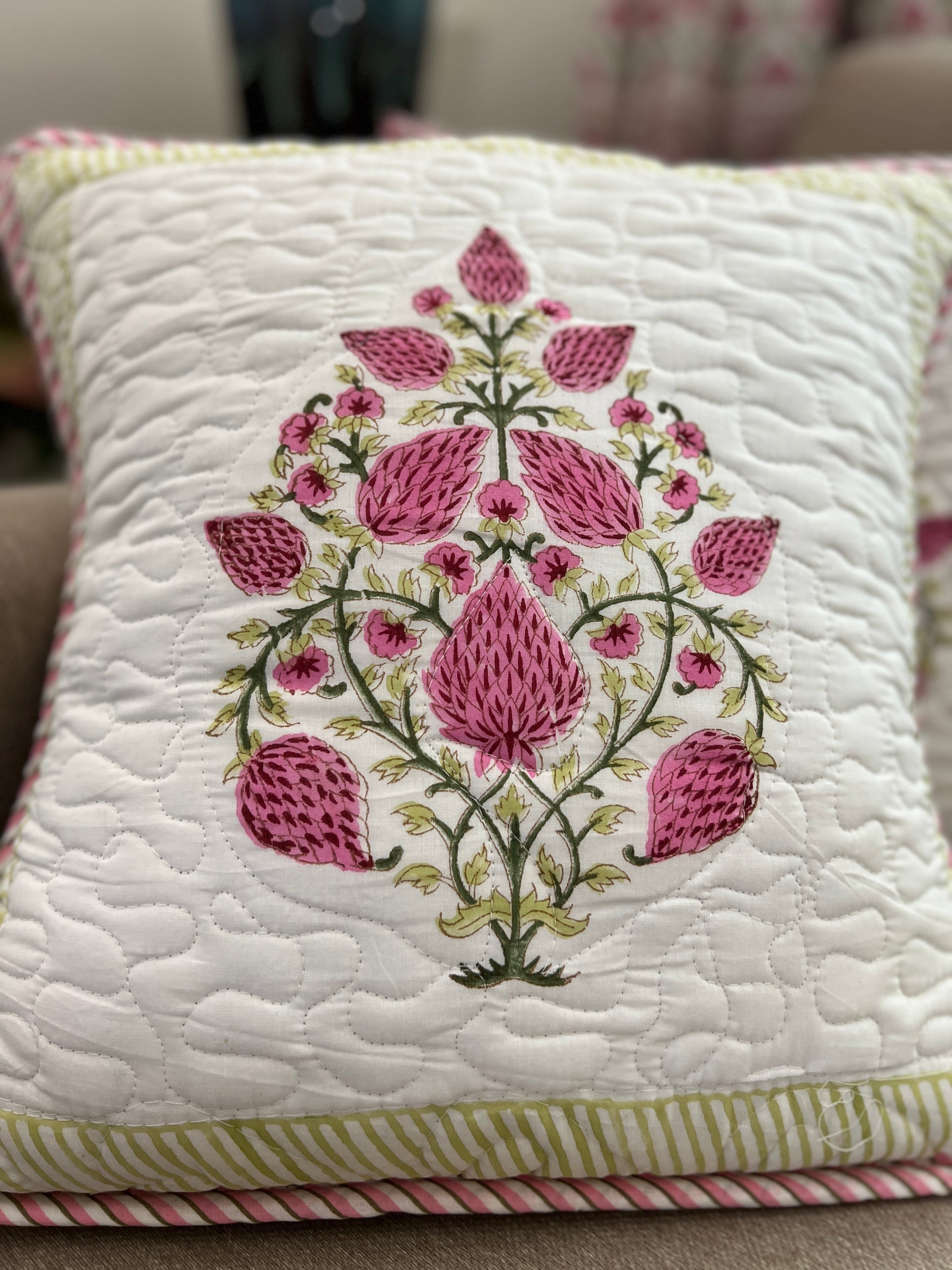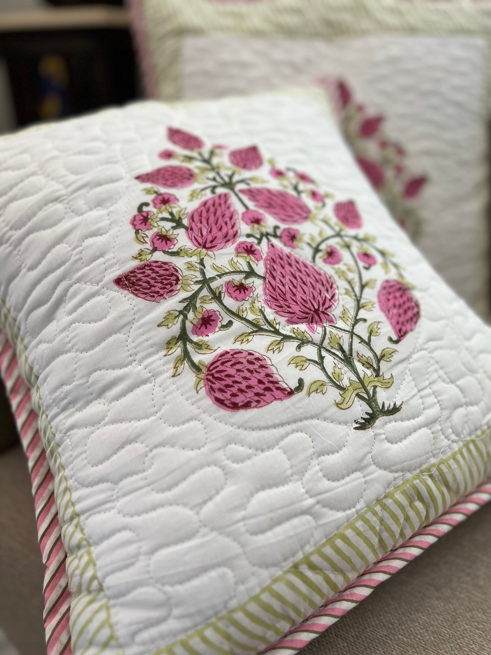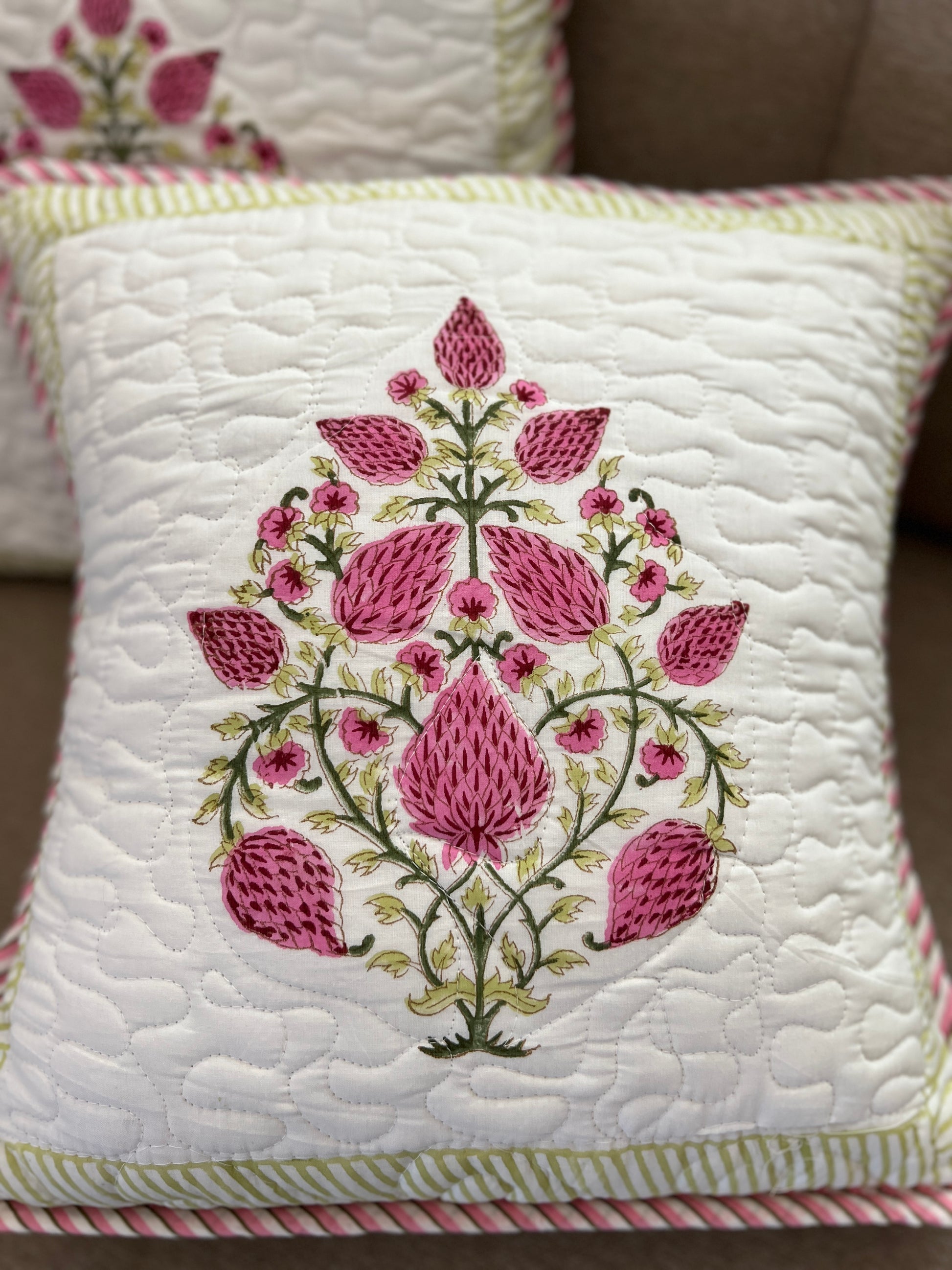 Pair | Quilted Cushion Cover | 16*16 Inches | Jaipur Block