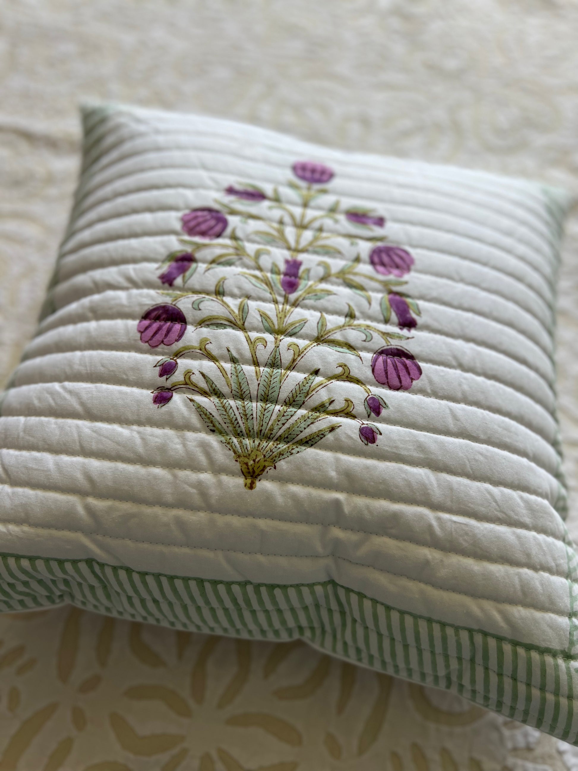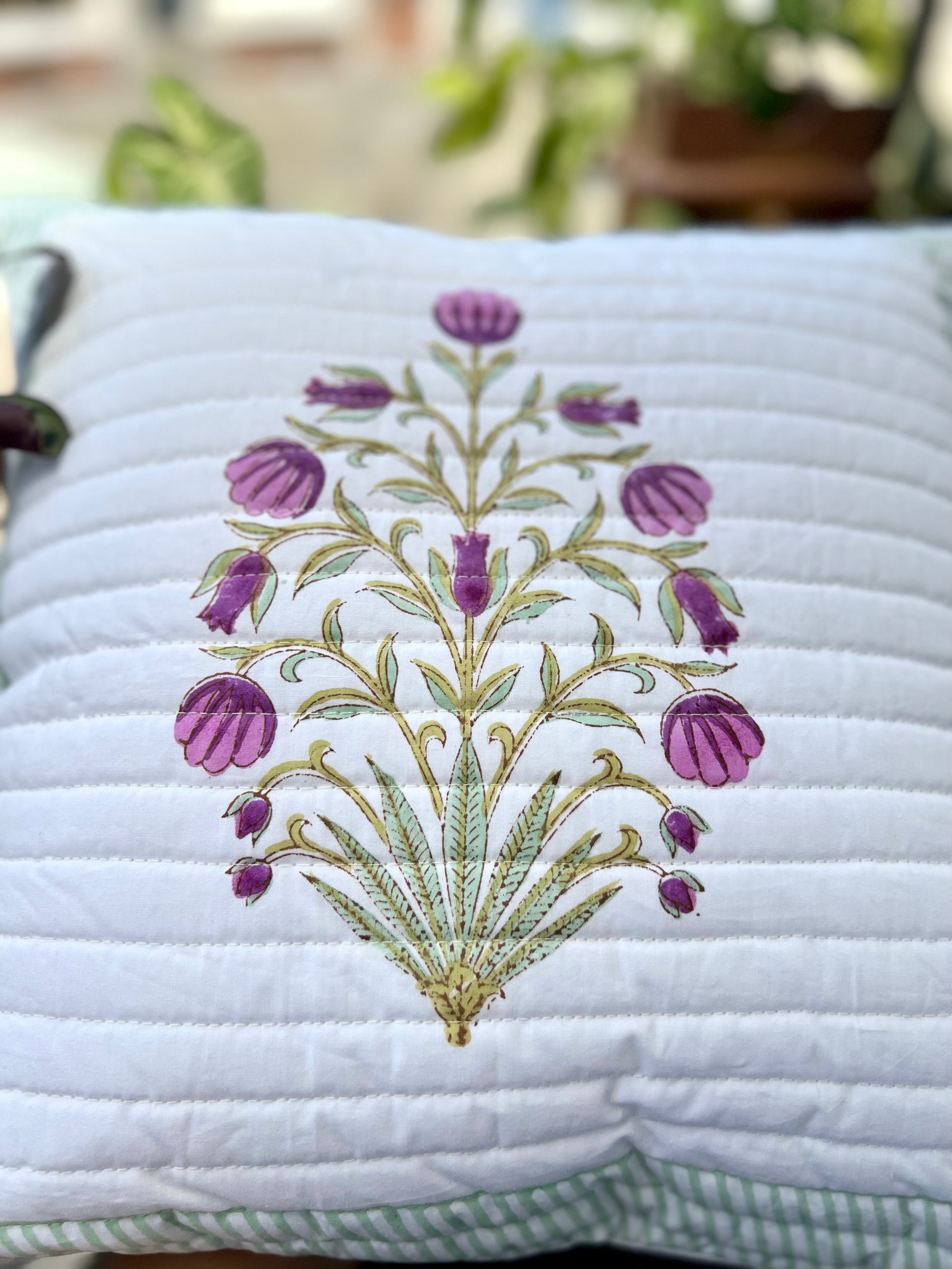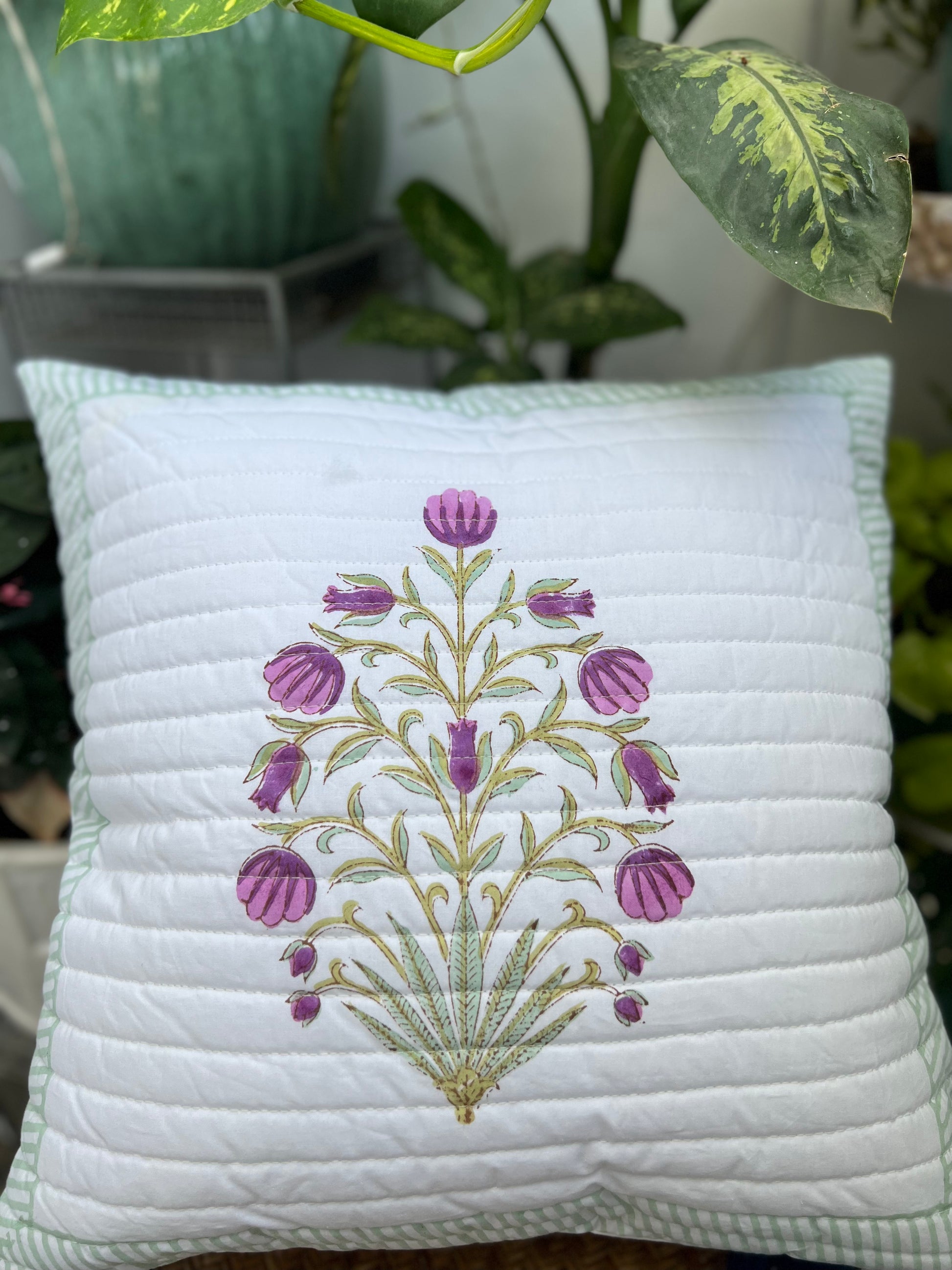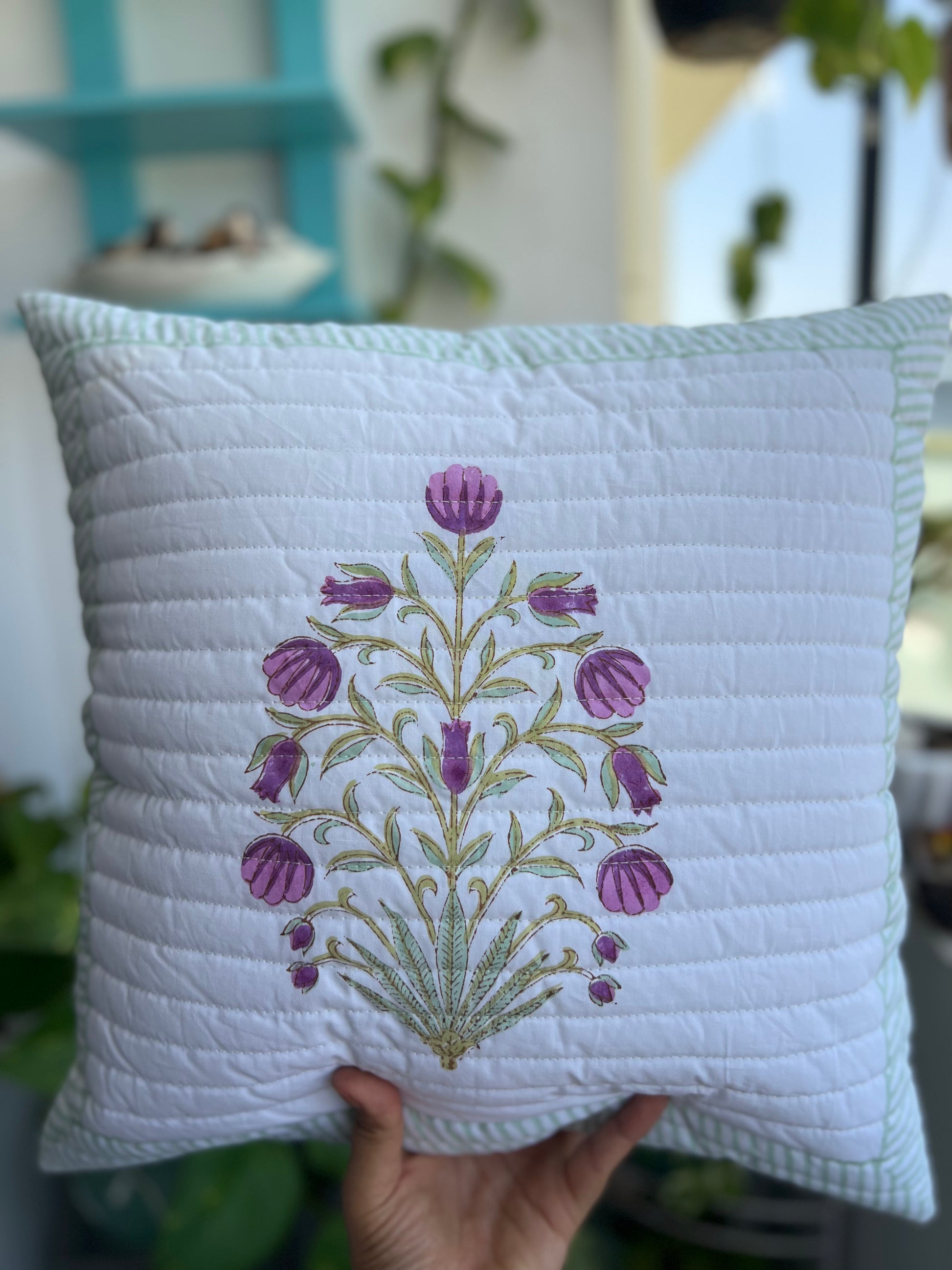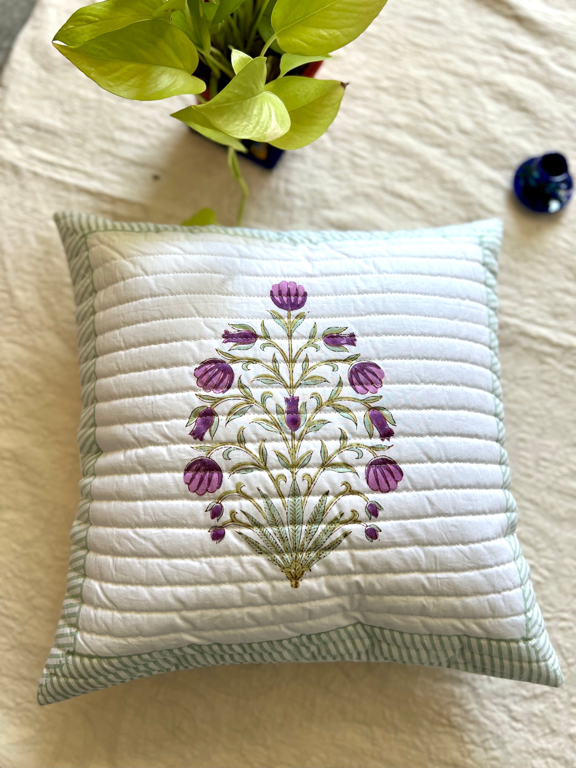 Quilted Cushion Cover | 16*16 Inches | Mystic Meadows