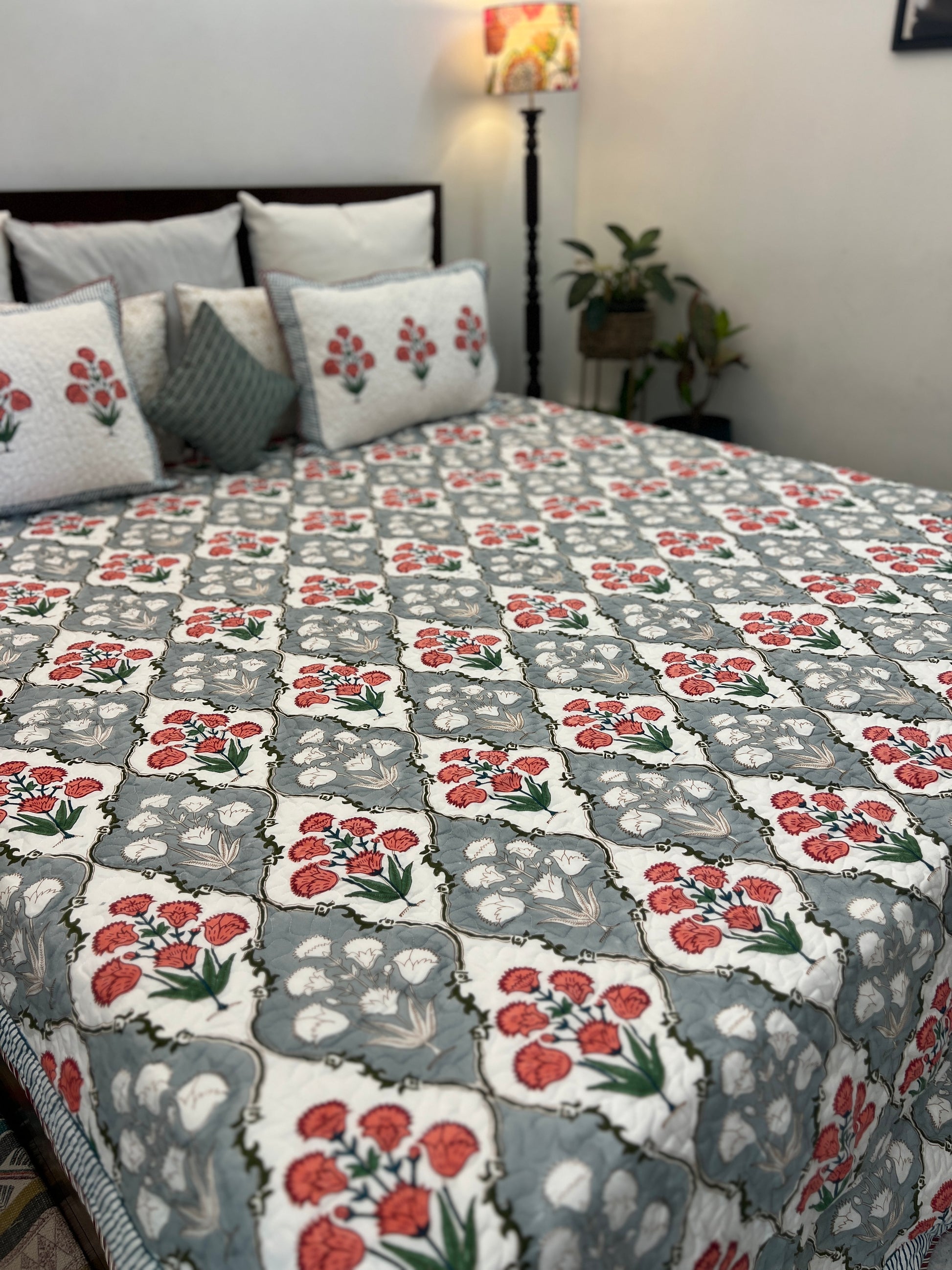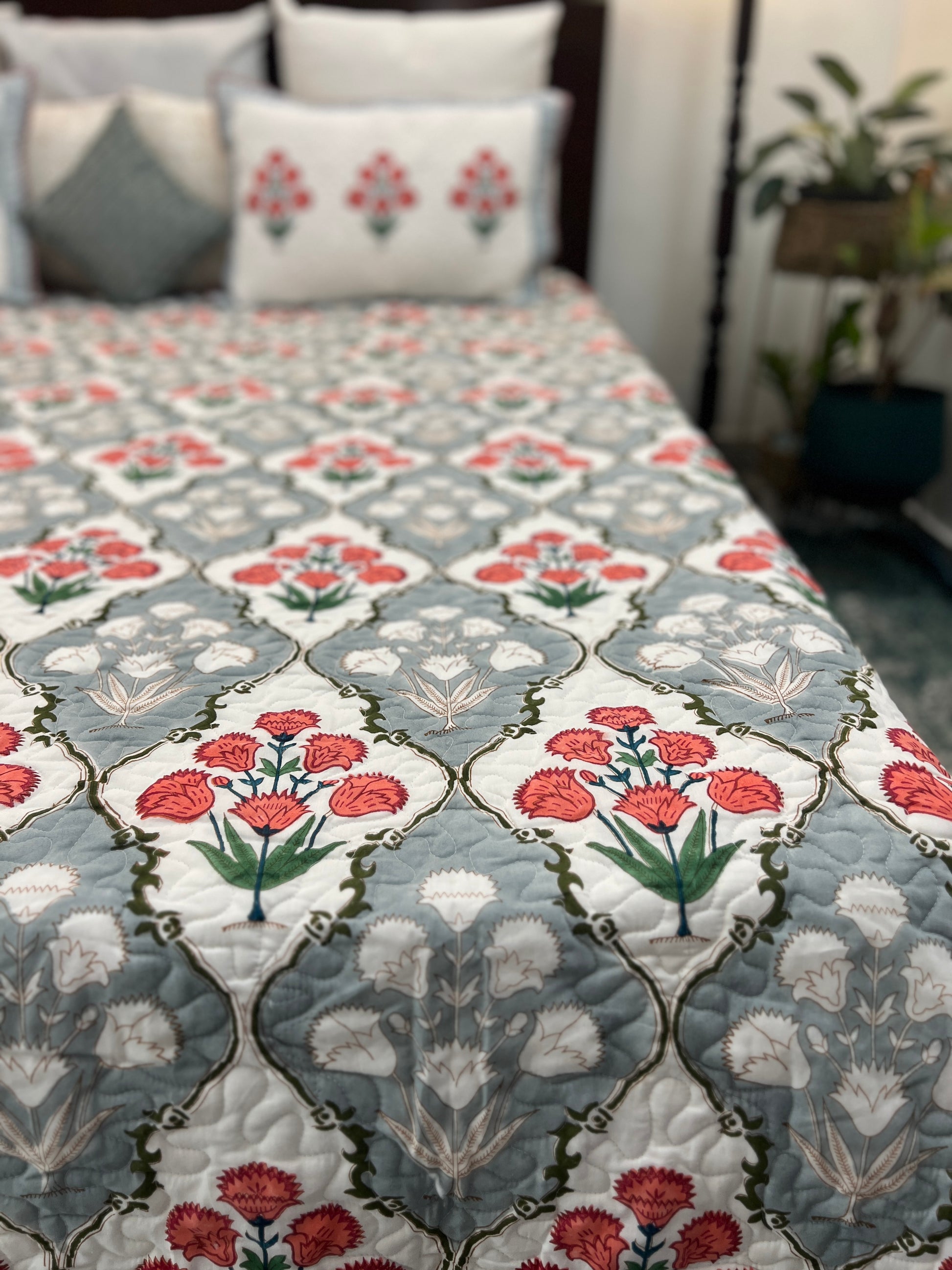Set Contains : One king size quilted bedcover with two quilted pillow cases