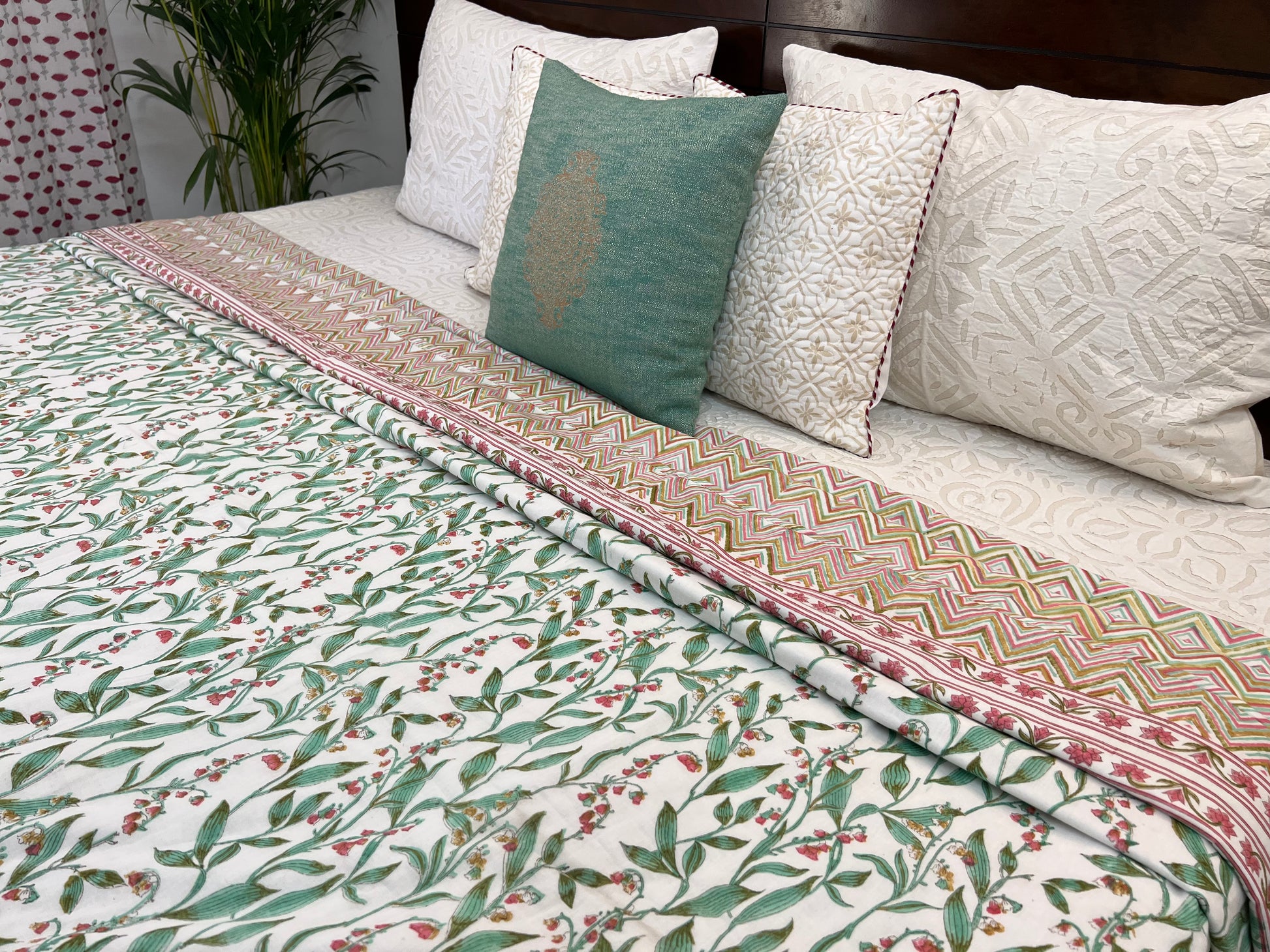Meet us in the middle of a Quilt and a Blanket, we bring you a Dohar that is soft on the skin with natural and cooling traits. The pure Mul Cotton Dohar wraps around you like a dream. Consists of two layers of hand block printed muslin with a middle layer of flannel.
