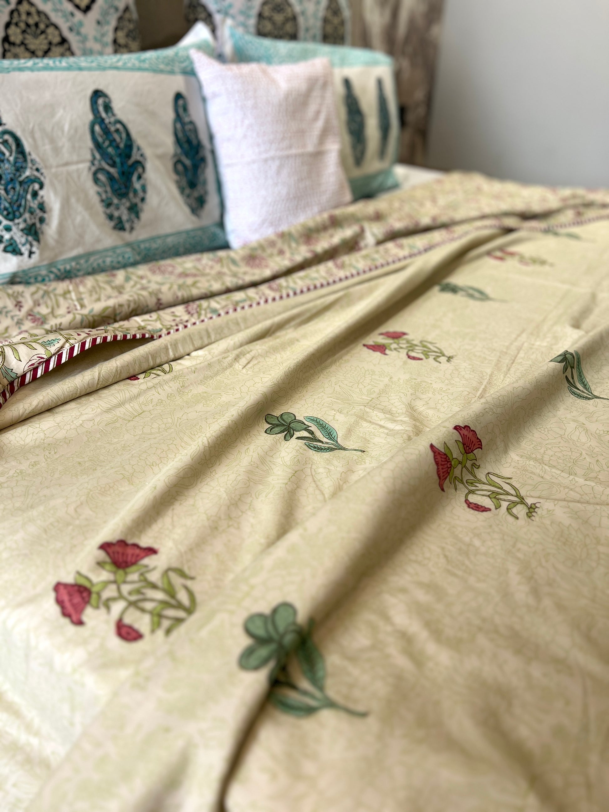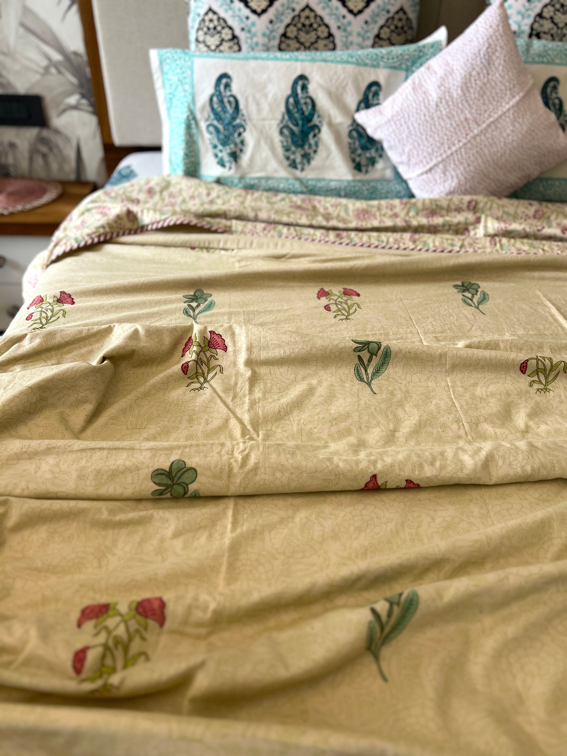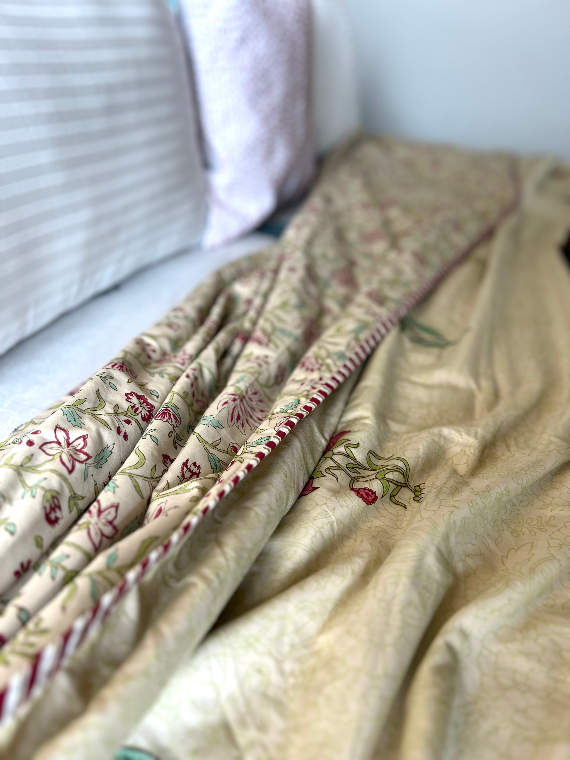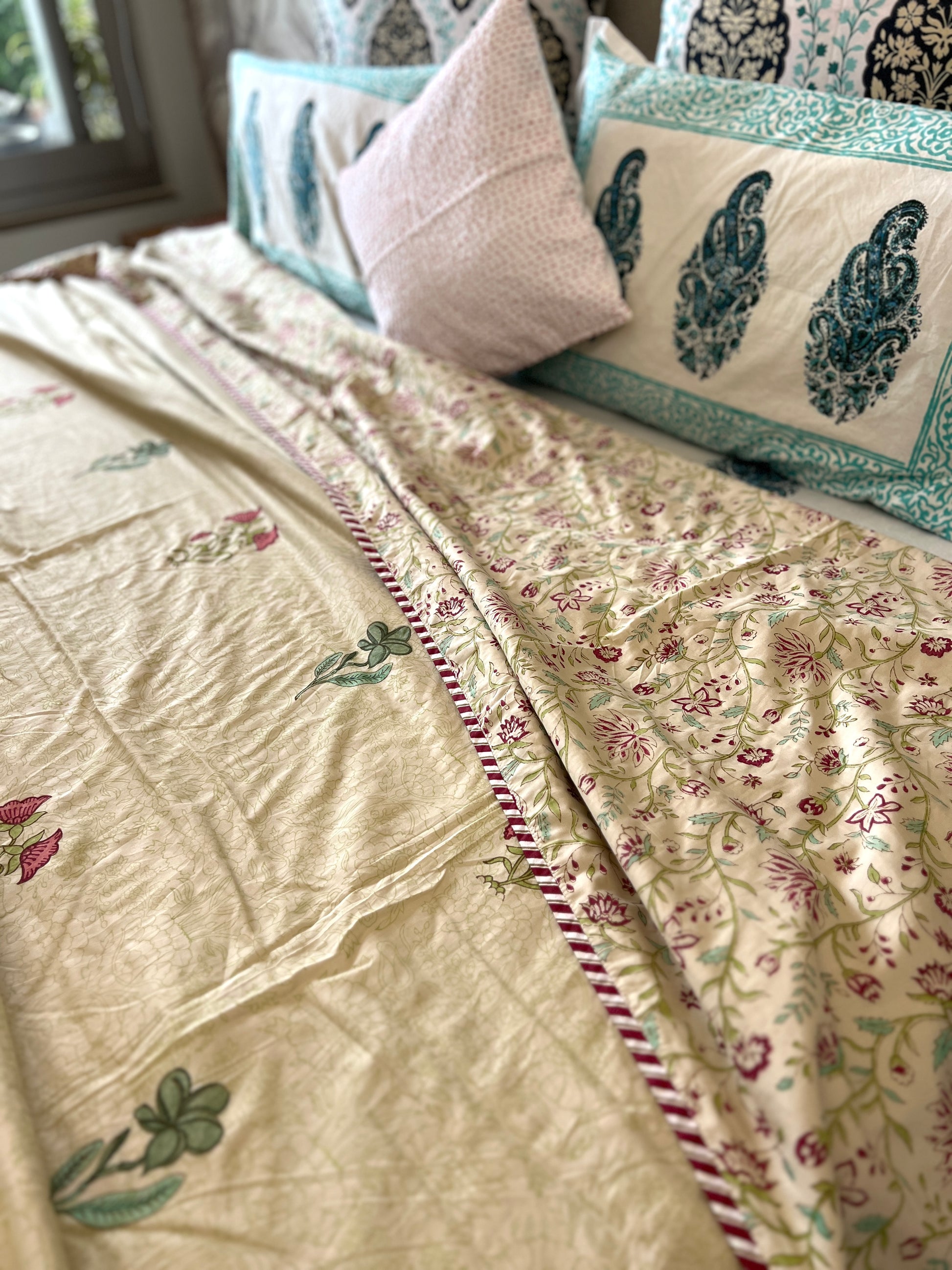 Reversible Hand Block Dohar | King Size 90*108 Inches | Muslin Layers