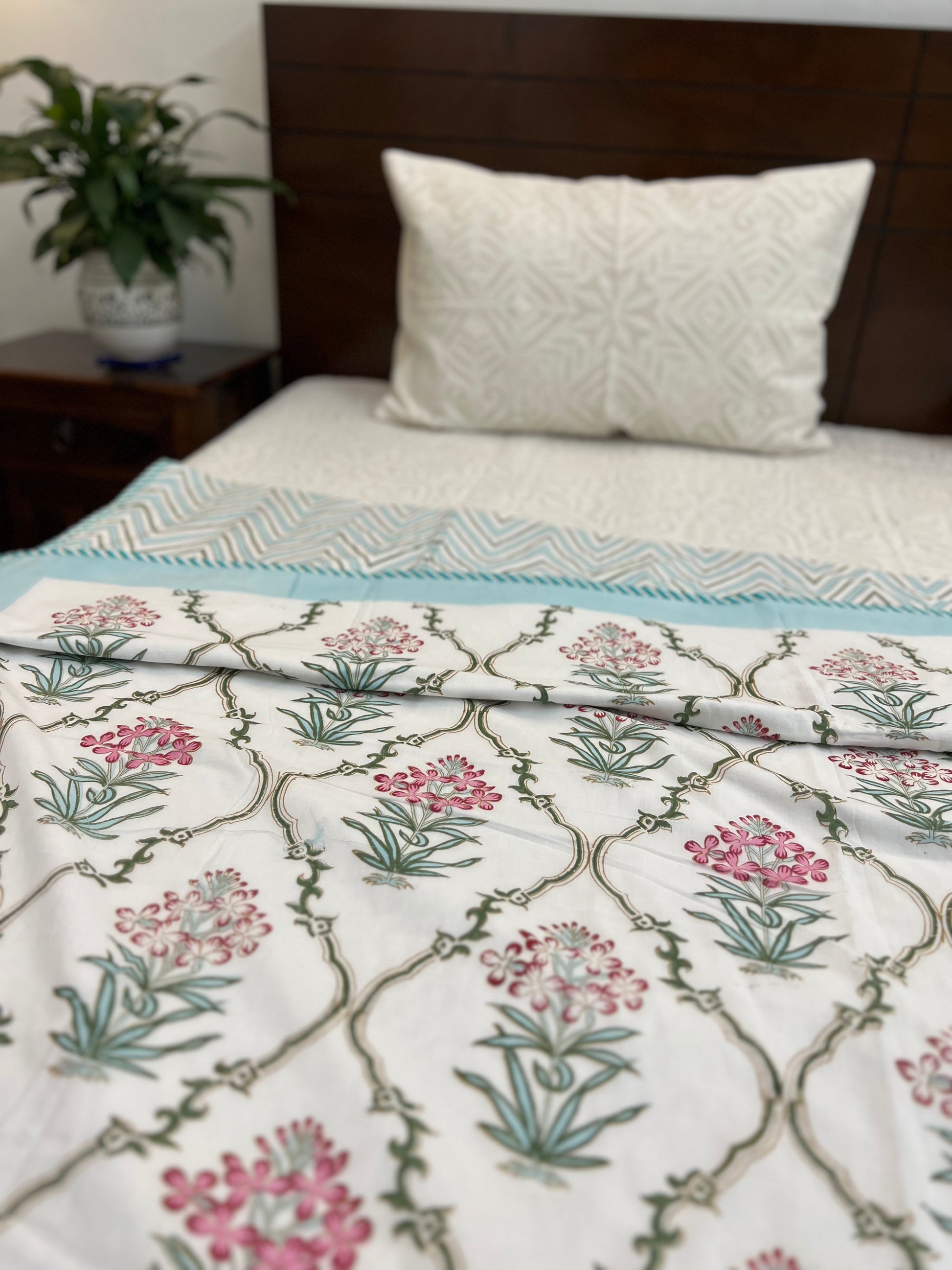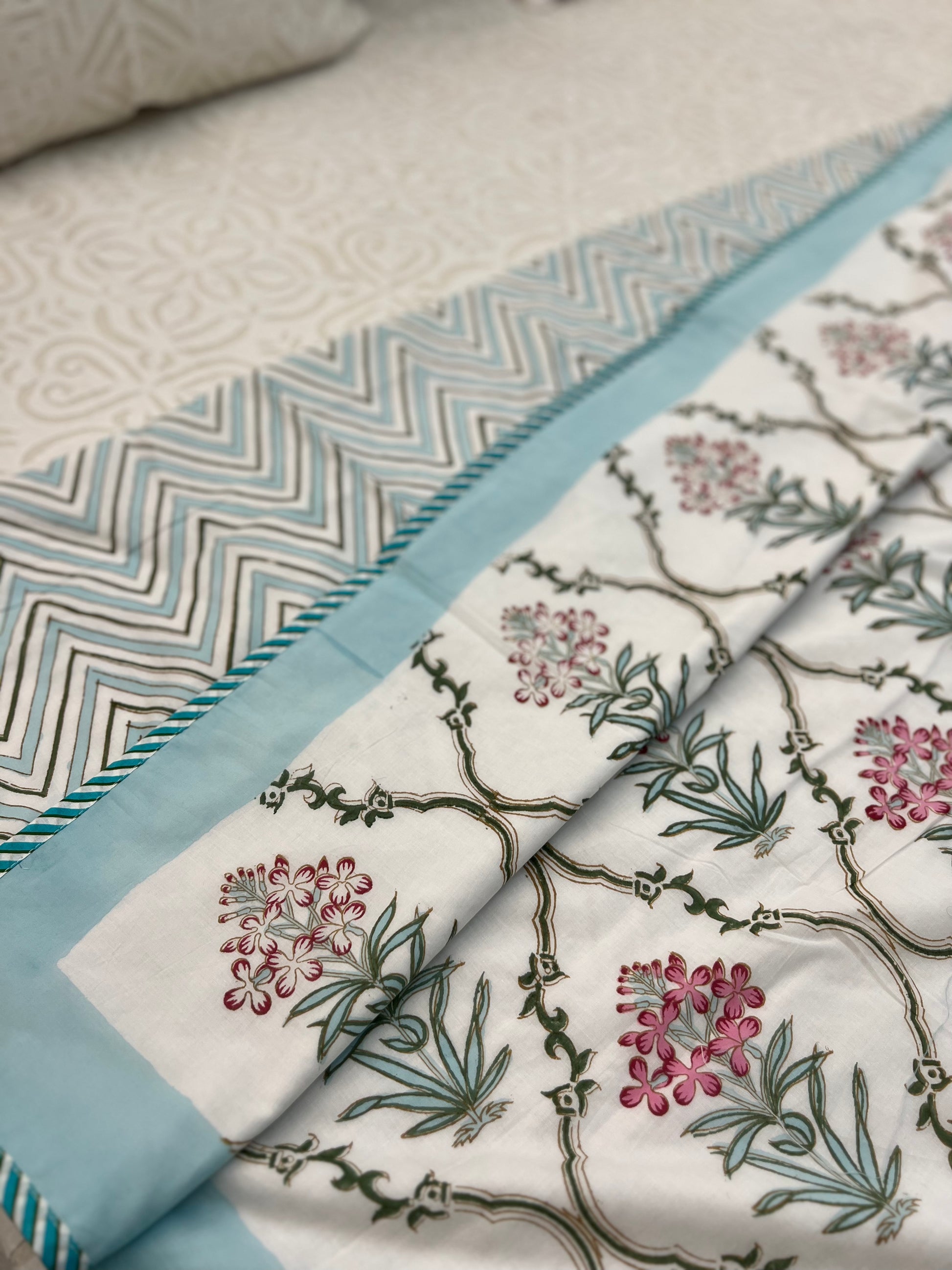 Reversible Hand Block Dohar | Single Size | 60*90 Inches | Aqua Jaal