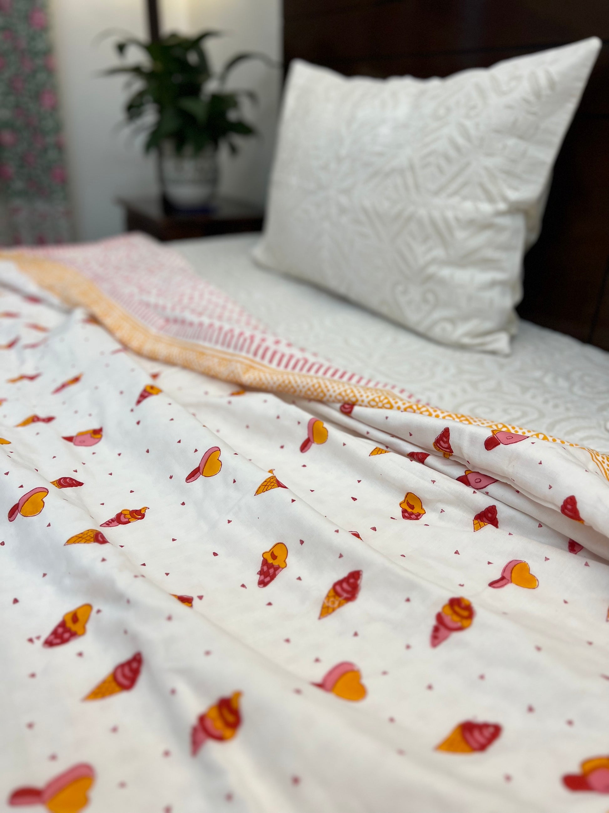 Reversible Hand Block Organic Cotton Dohar | Single Size | 60*90 Inches | Icecreams