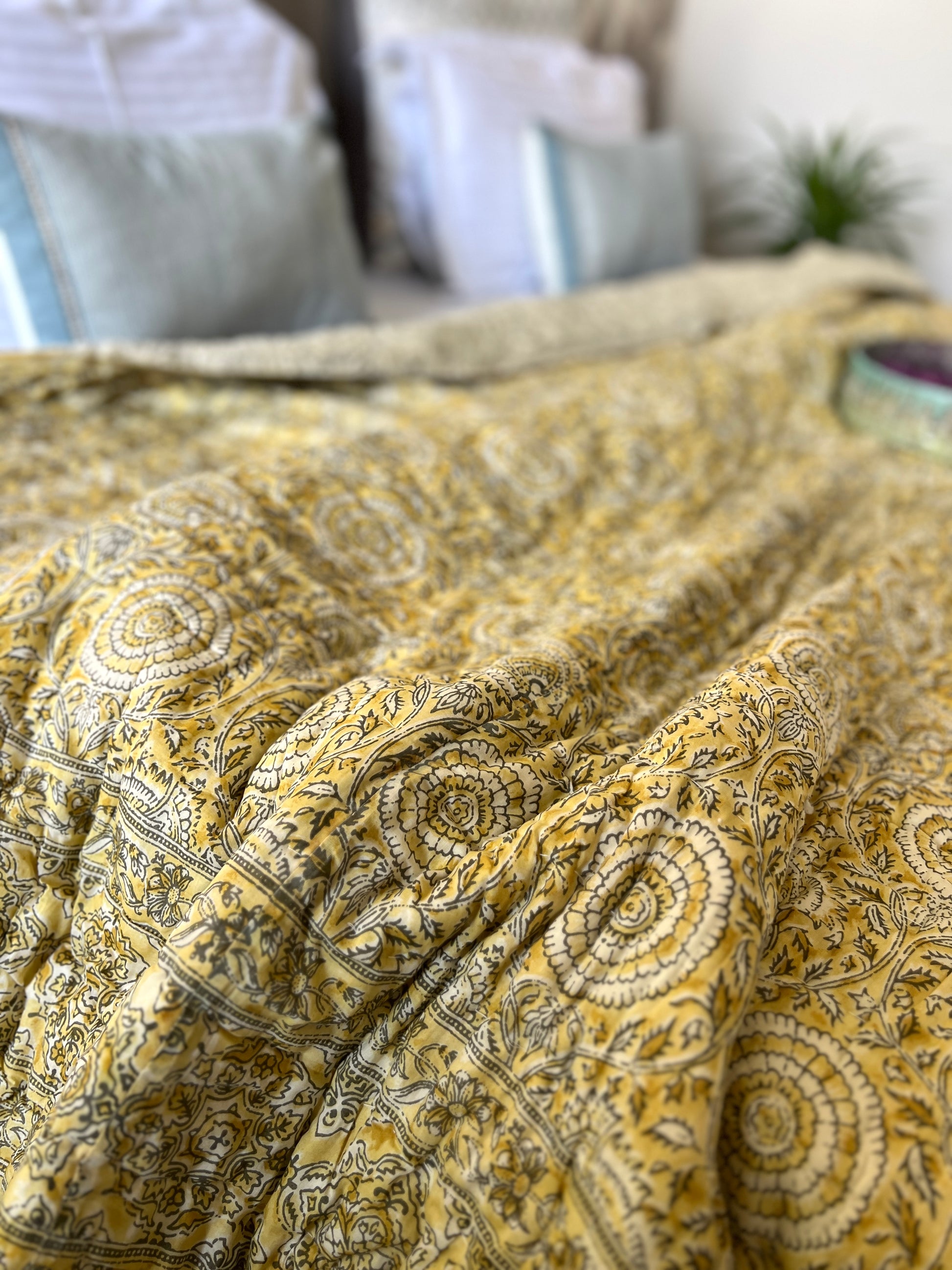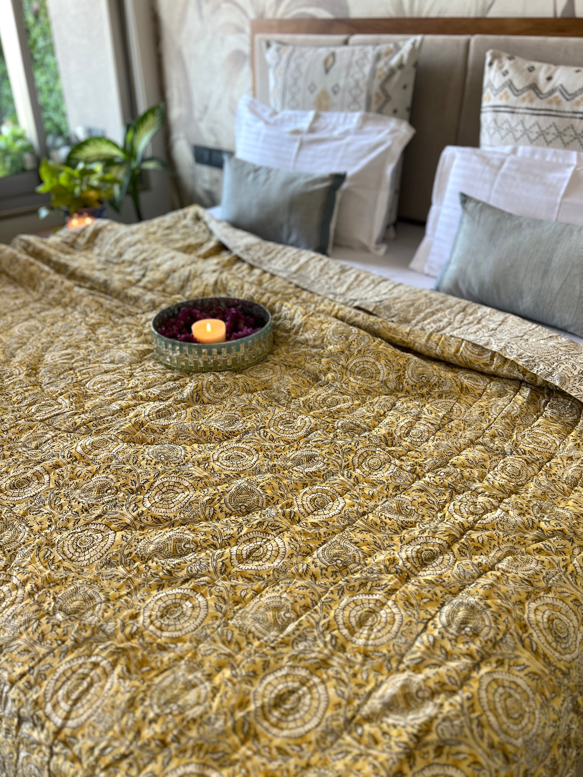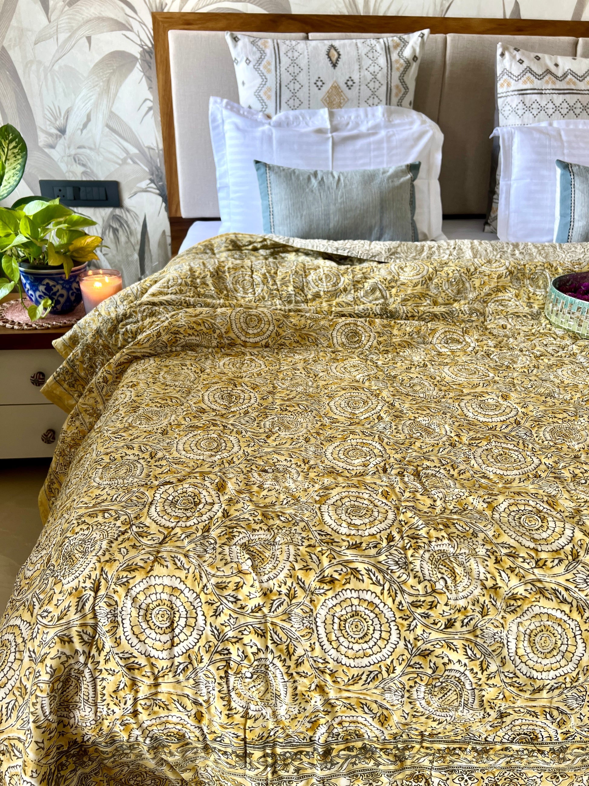 Reversible Hand Print Quilt | King Size 90*108 Inches | Basant