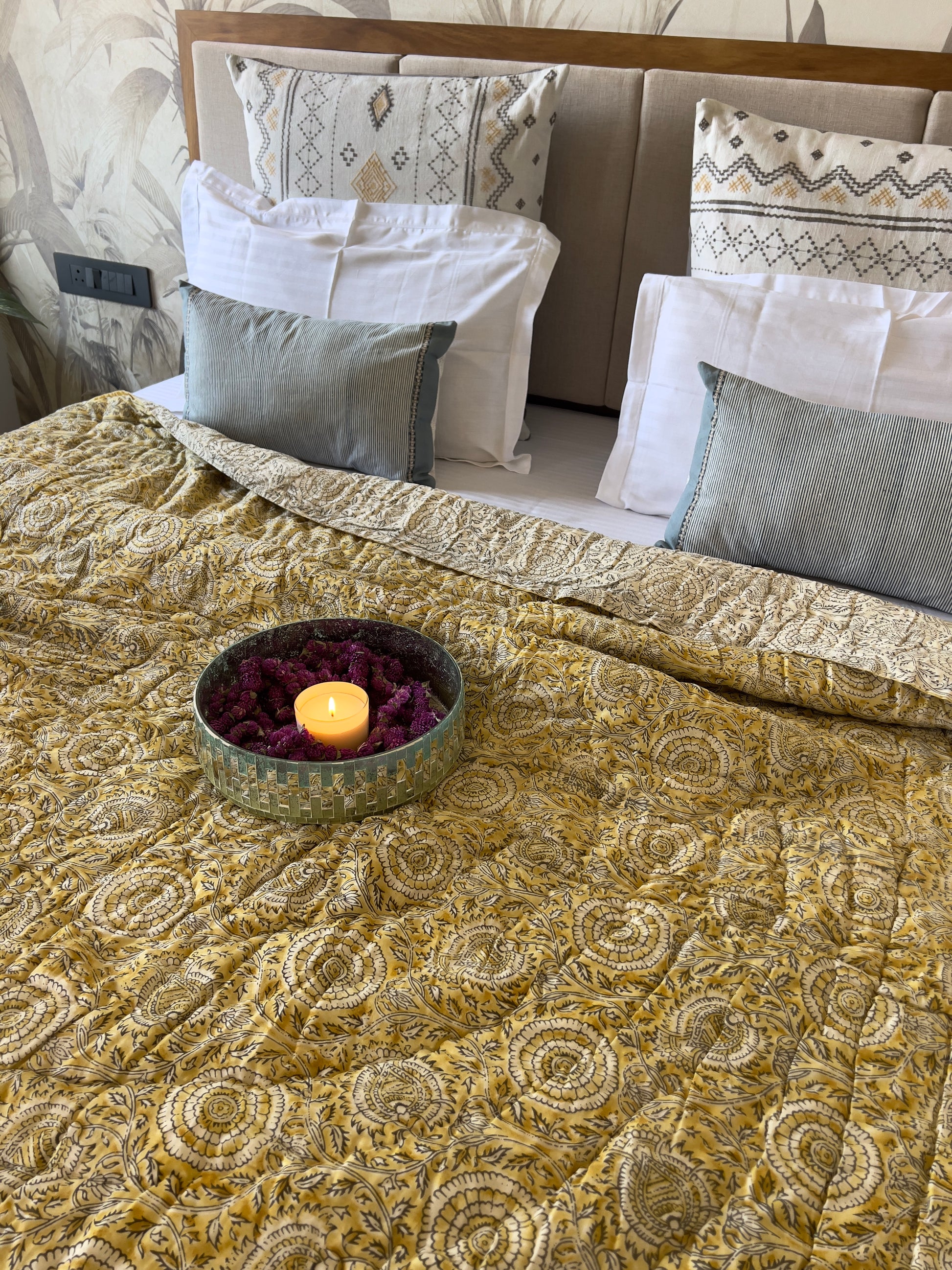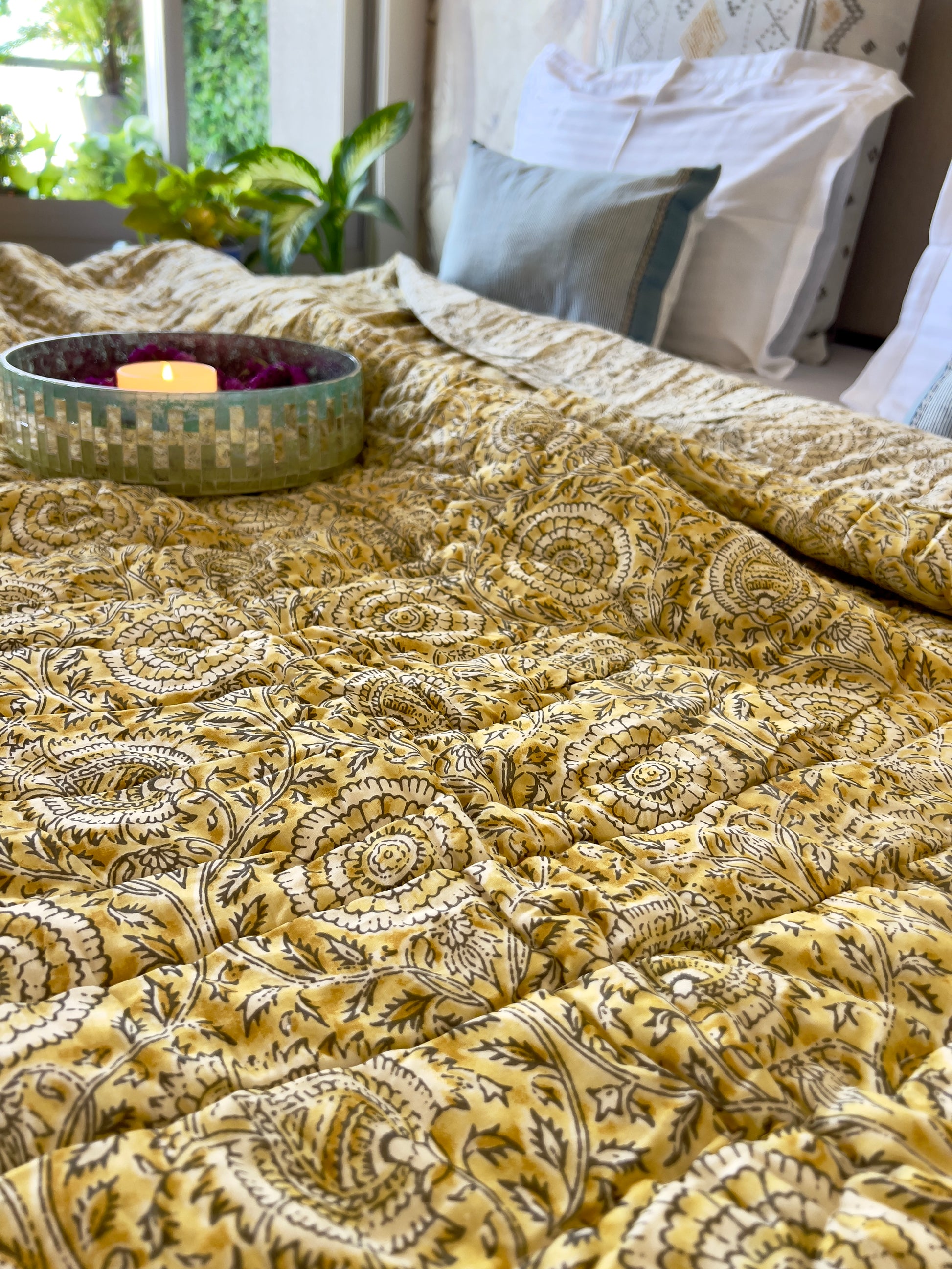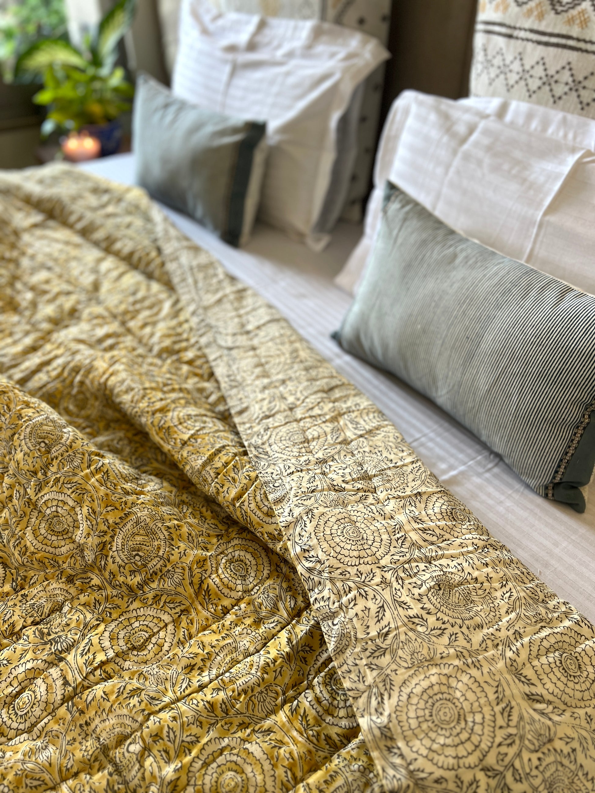 Reversible Hand Print Quilt | King Size 90*108 Inches | Basant