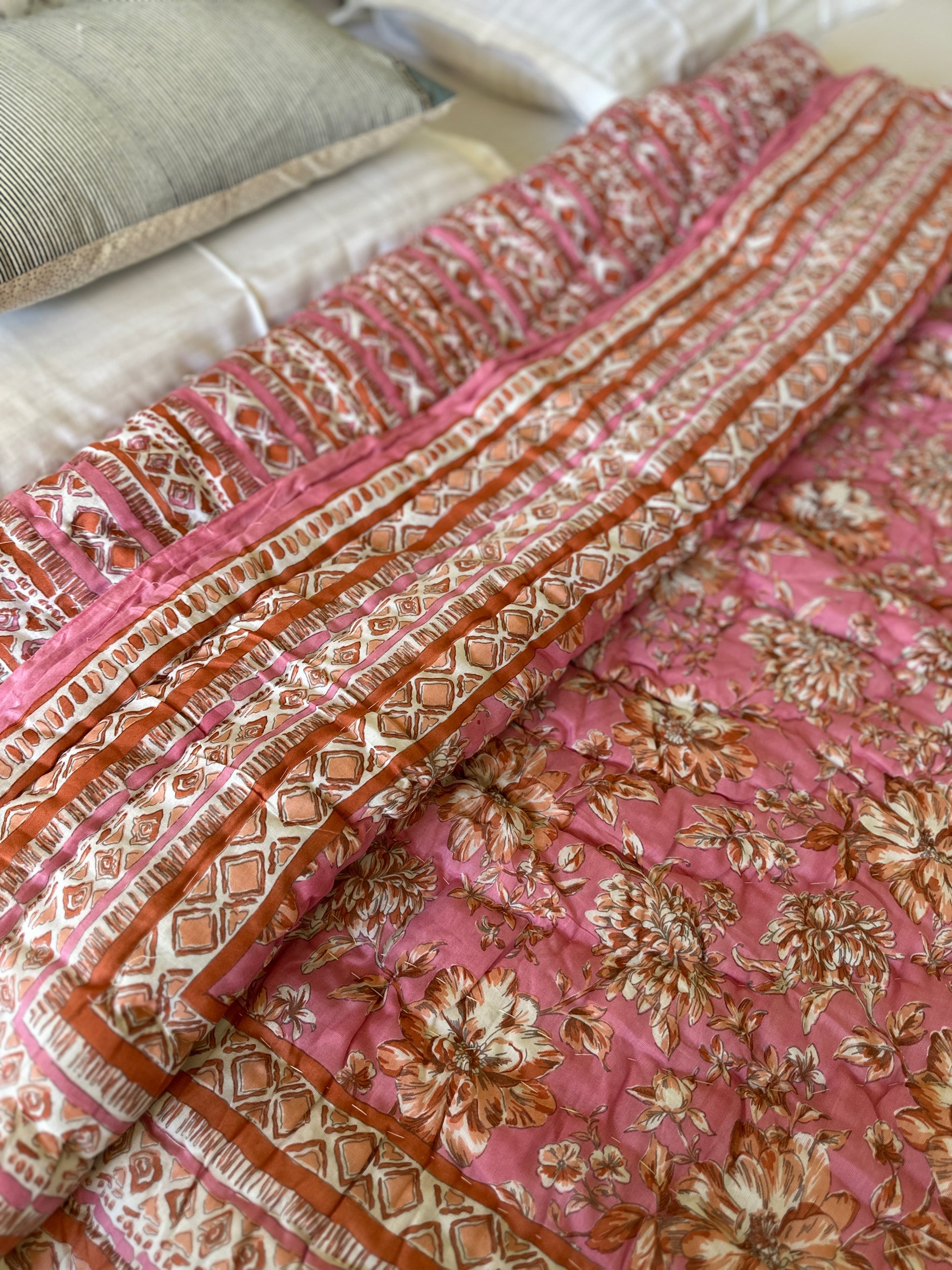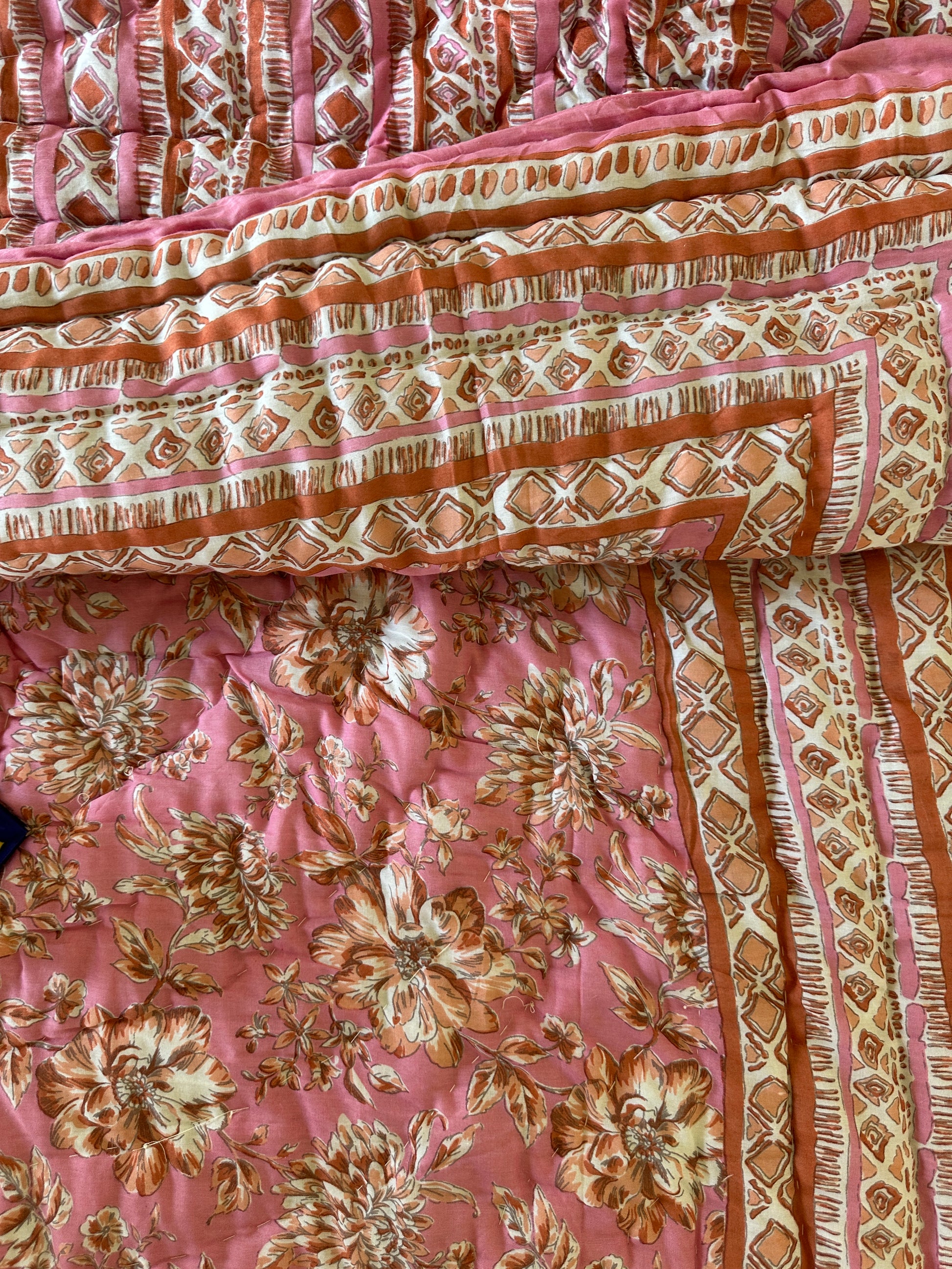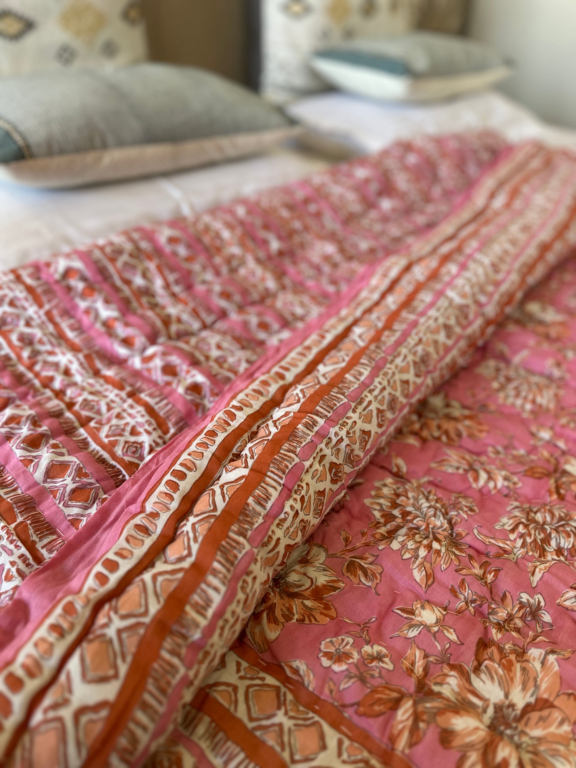 Reversible Hand Print Quilt | Single Size 60*90 Inches | Floresta