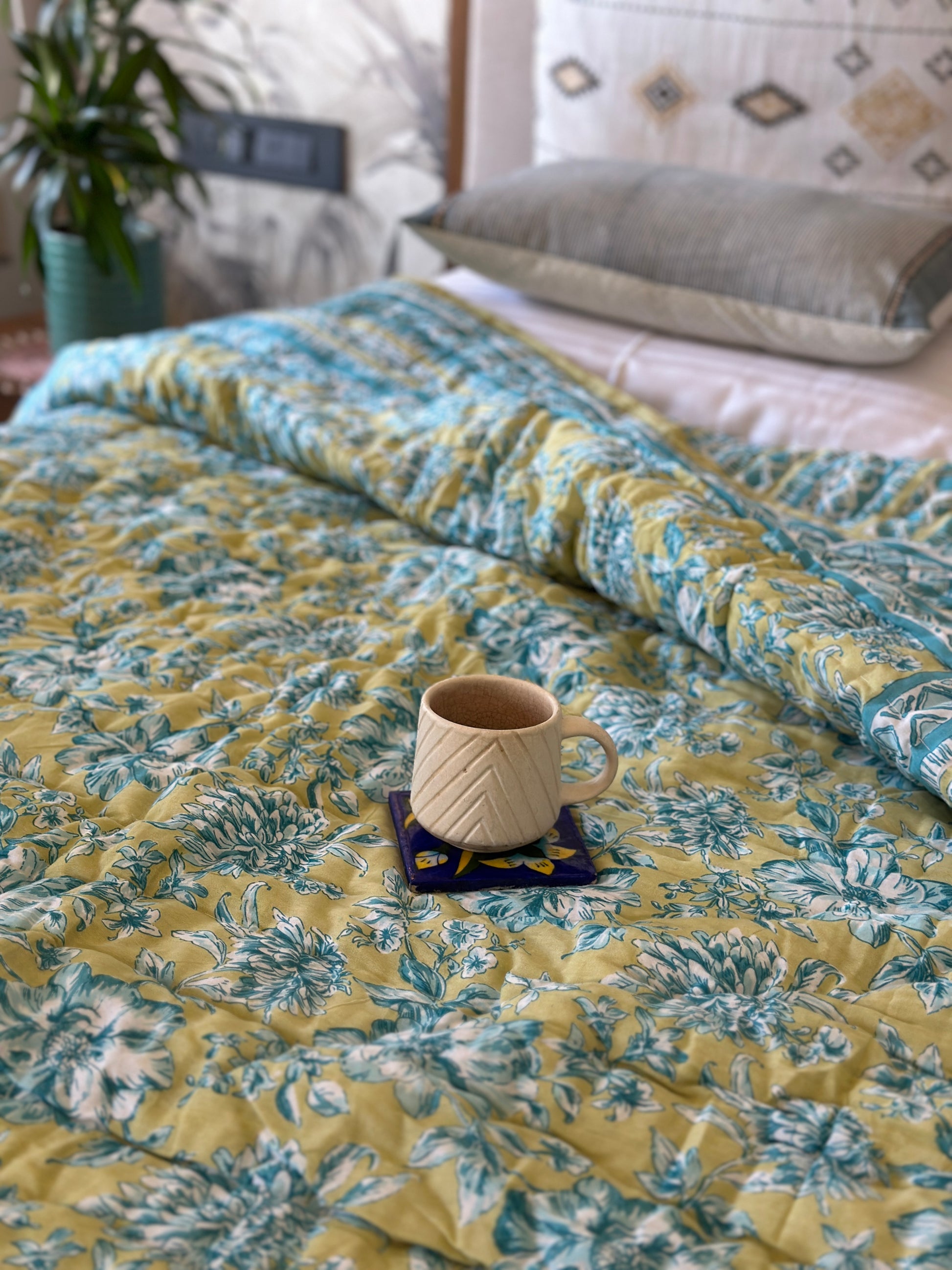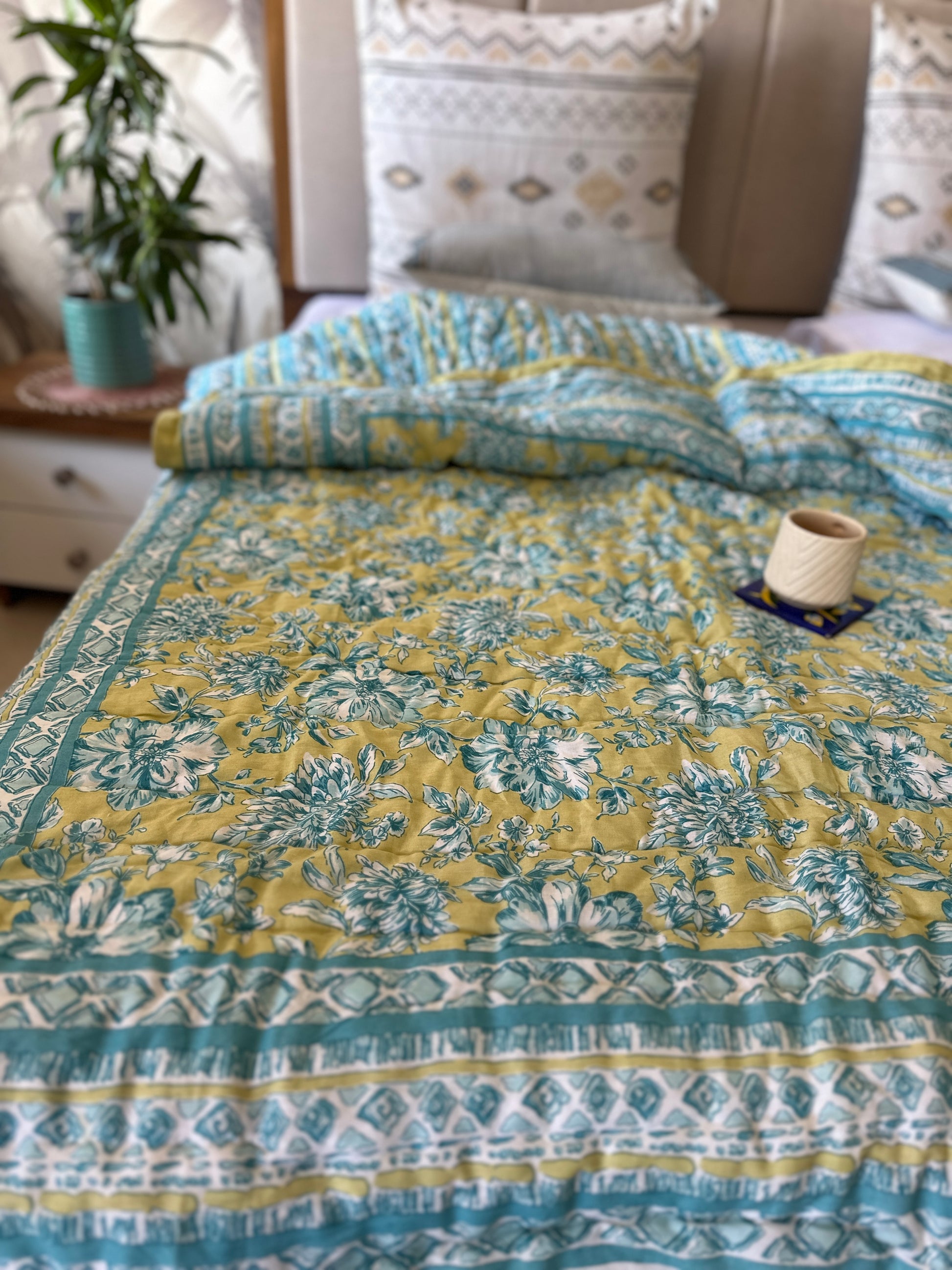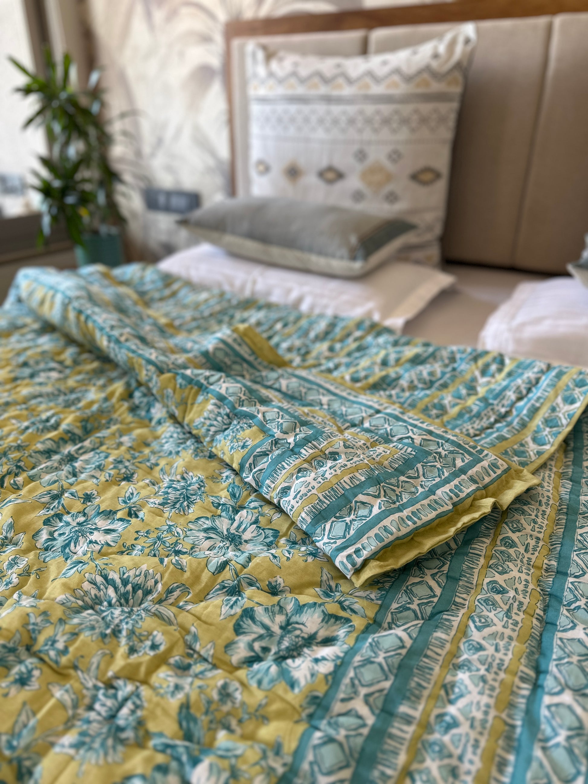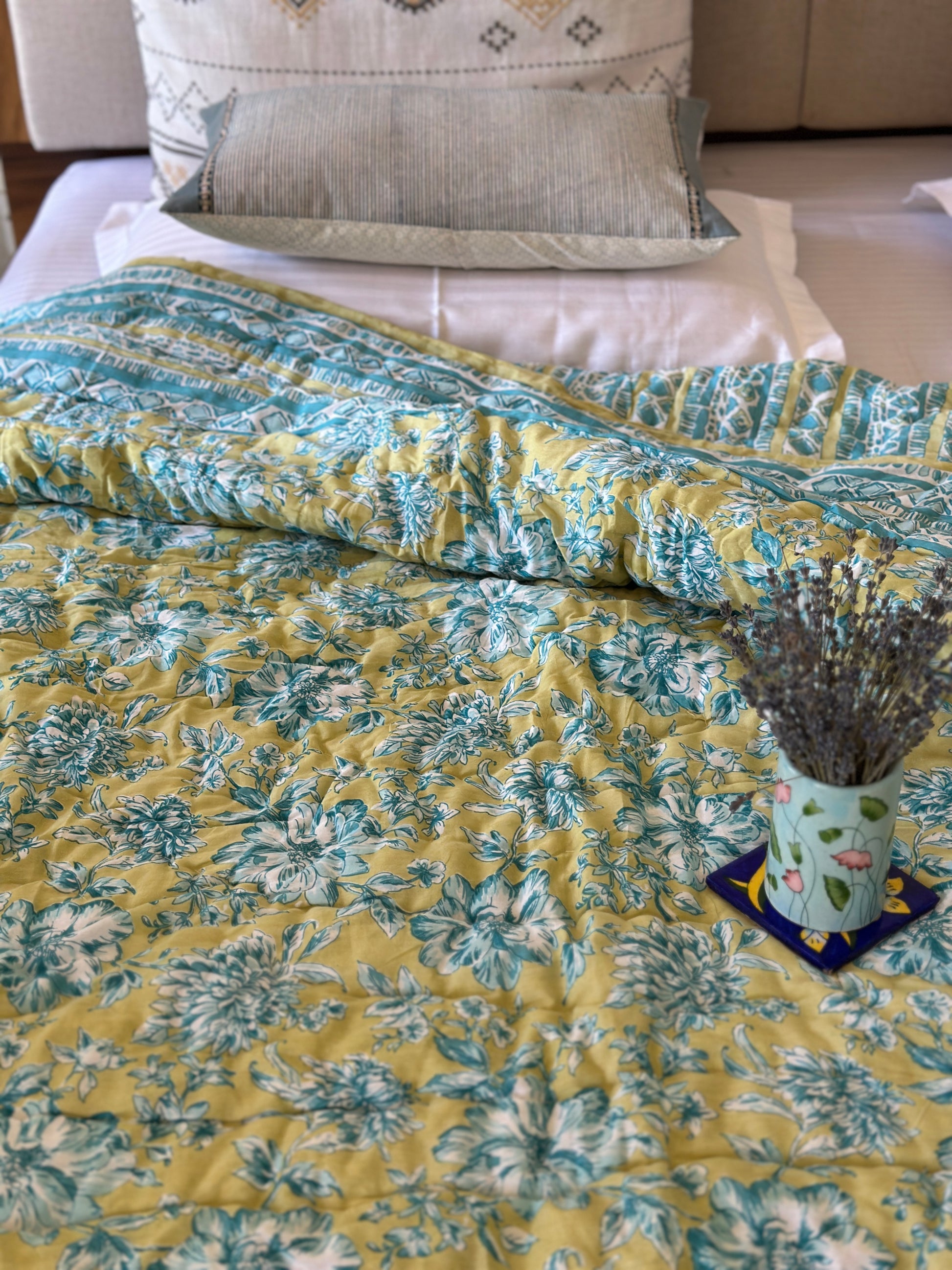 Reversible Hand Print Quilt | Single Size 60*90 Inches | Garden Whispers