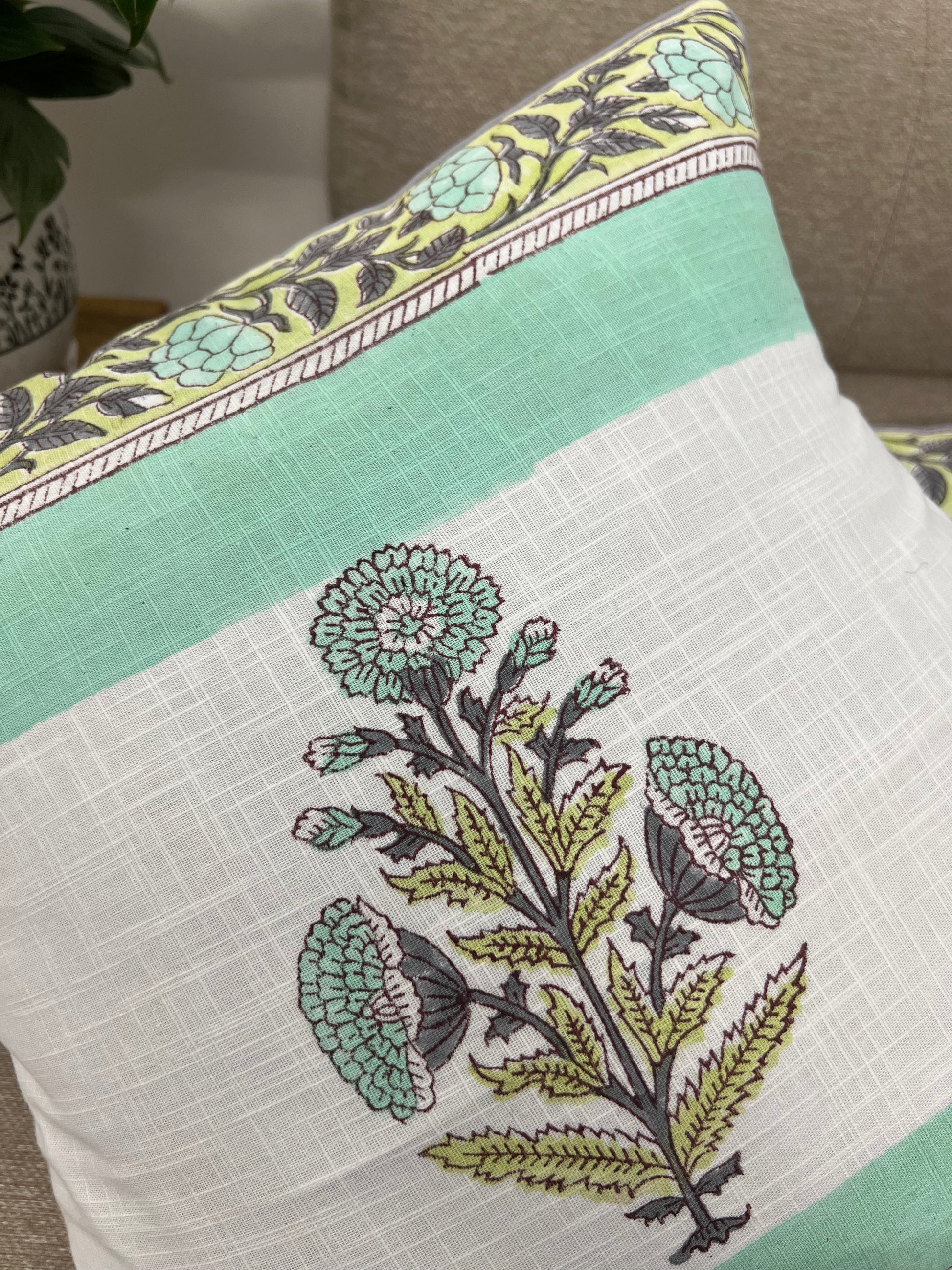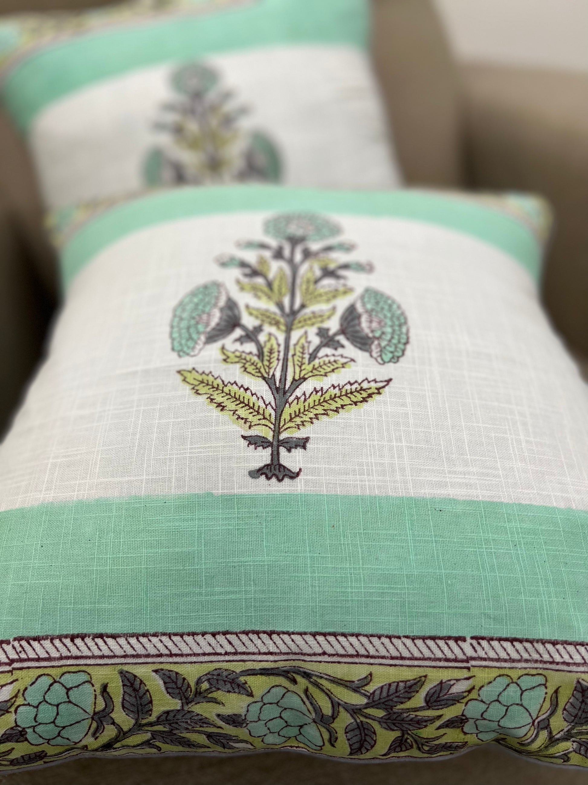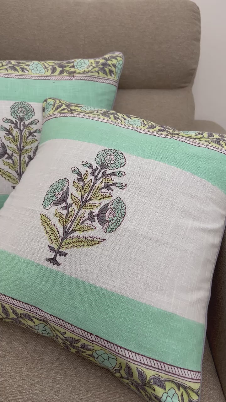 Pair | Slub Cotton Cushion Cover | 16*16 Inches | Aqua Mehtab