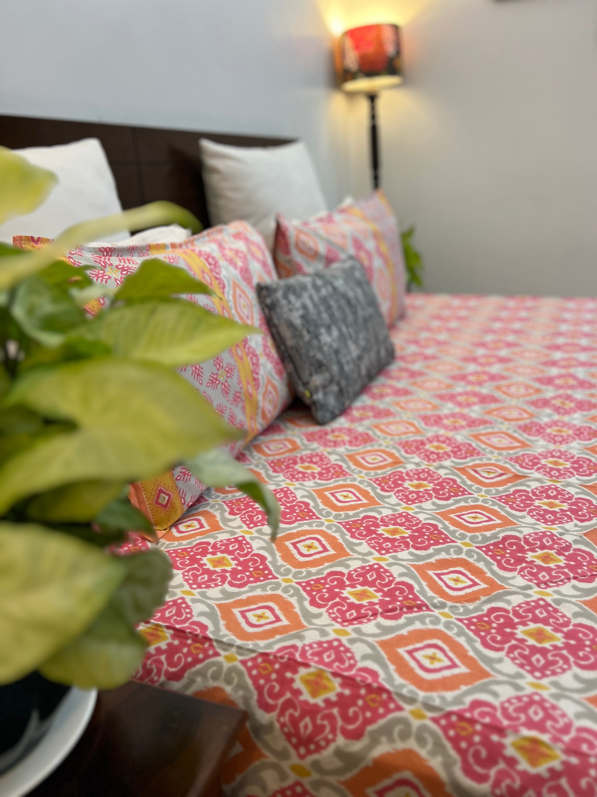 A delightful combination of comfort and elegance. This bedsheet harmonizes perfectly with your interior theme.Elevate your sleeping experience with this exquisite bedsheet that embodies comfort, style, and a touch of serenity.