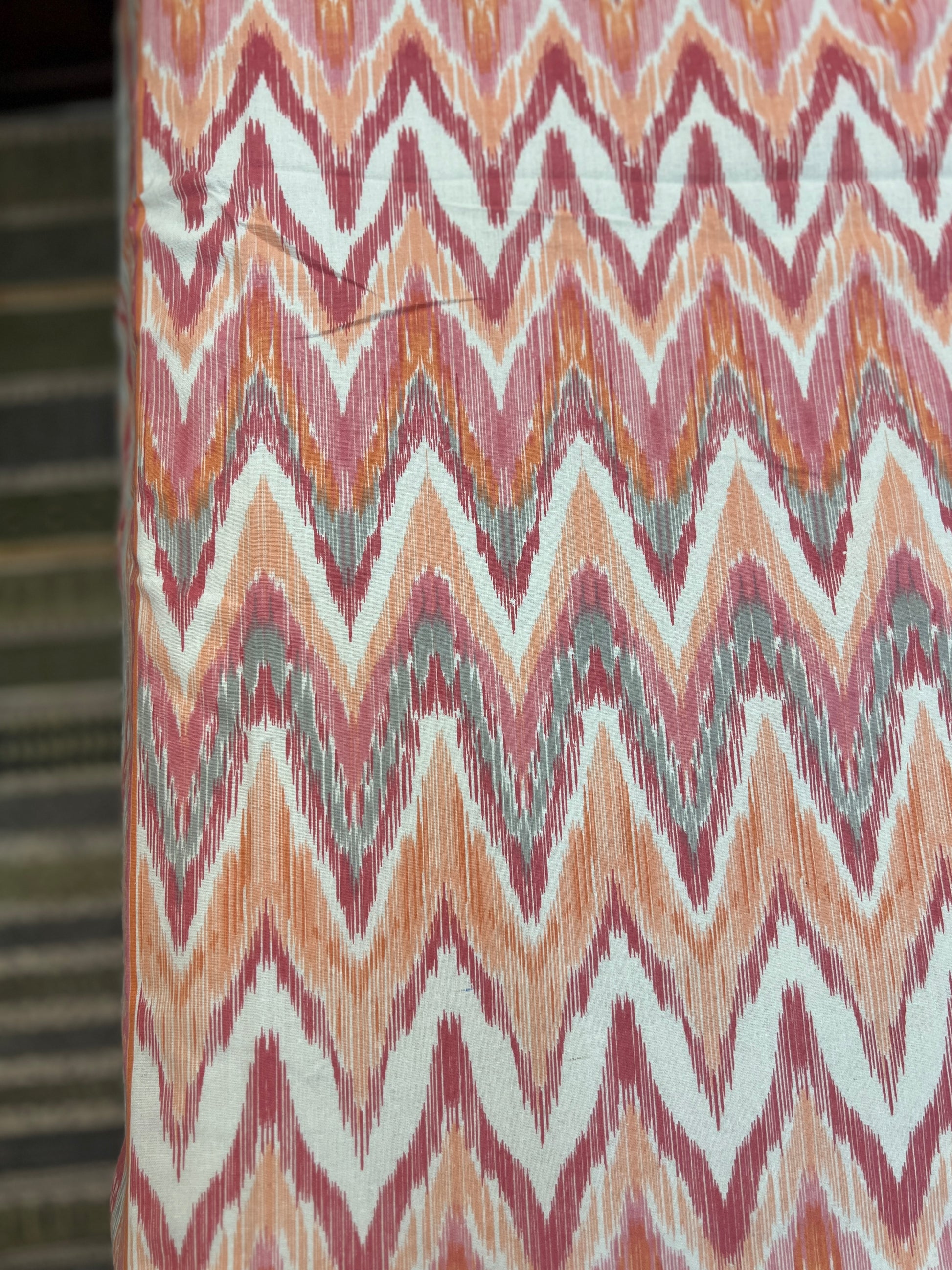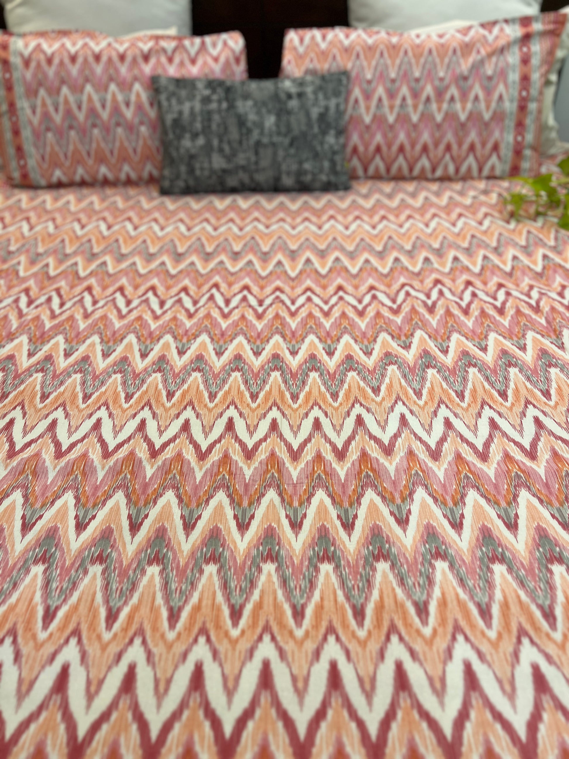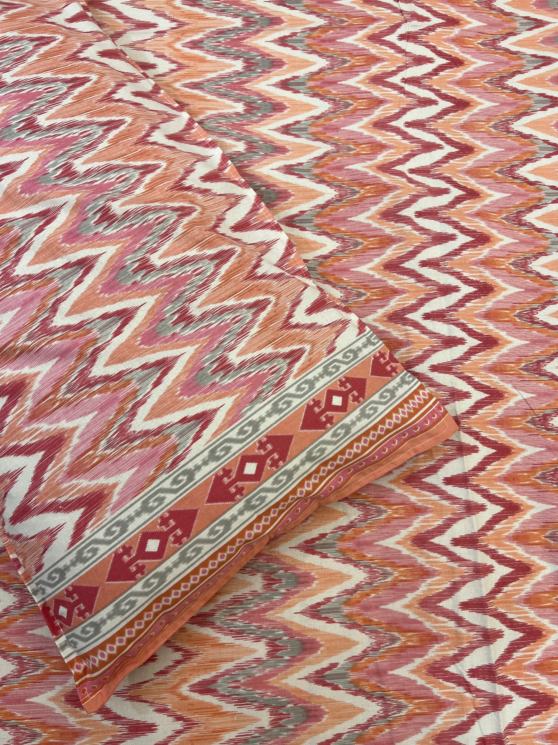 Introducing our Ikkat Impressions Super King Size Bedsheet, a masterpiece of artistry and luxury. This generously-sized bedsheet measures 108*108 inches, providing an opulent and comfortable experience for your super king size bed.