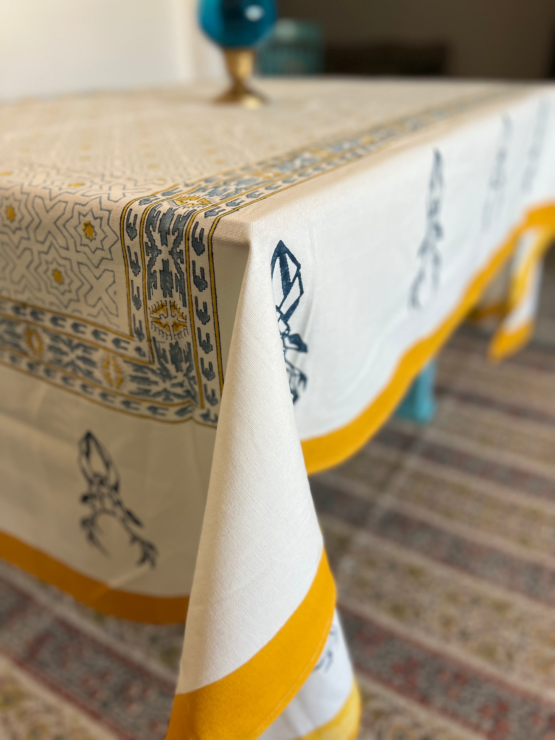 Table Cover 60*108 Inches | Canvas | Nilaya | Light Yellow & Blue